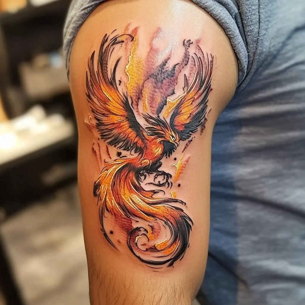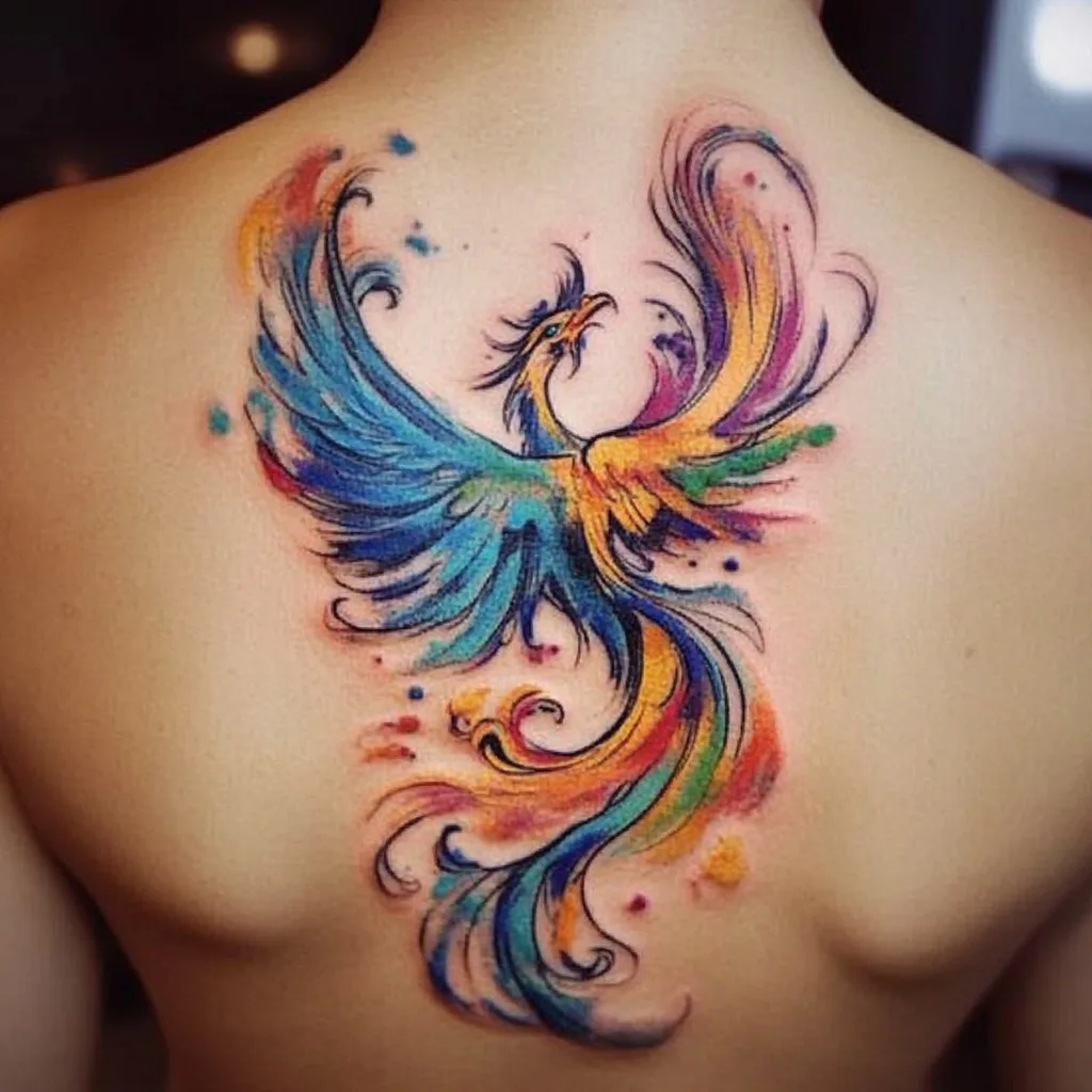1. Elegant Watercolor Phoenix Tattoo – A Symbol of Vibrant Renewal