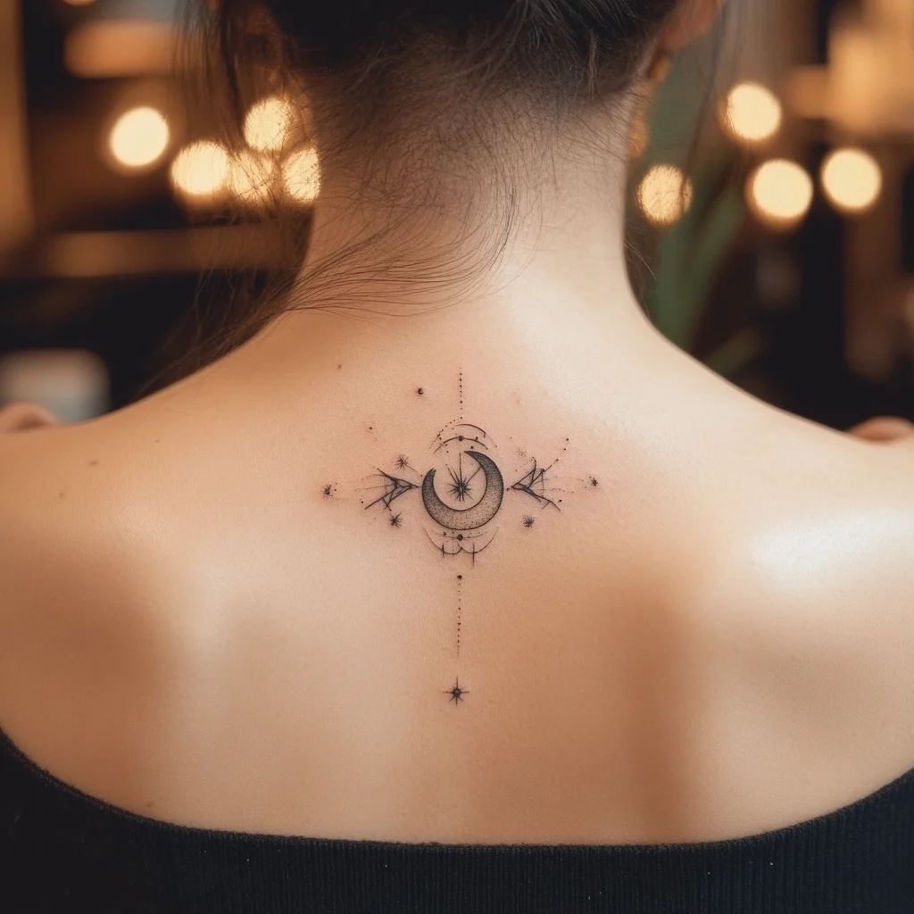 A popular spot for dainty celestial or constellation designs. This area adds a mysterious, feminine allure—especially when hair is worn up or styled to show it off.