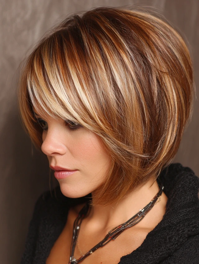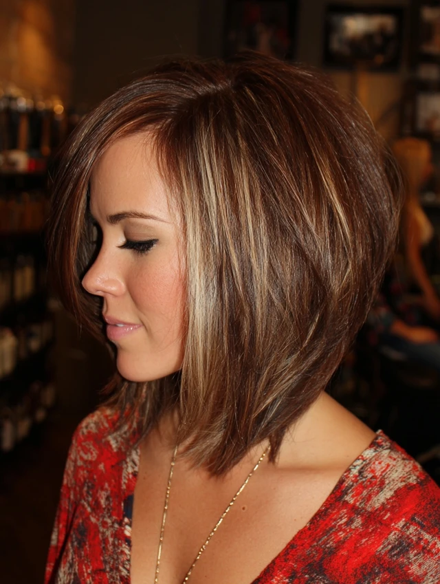 3. Layered Angled Bob with Highlights