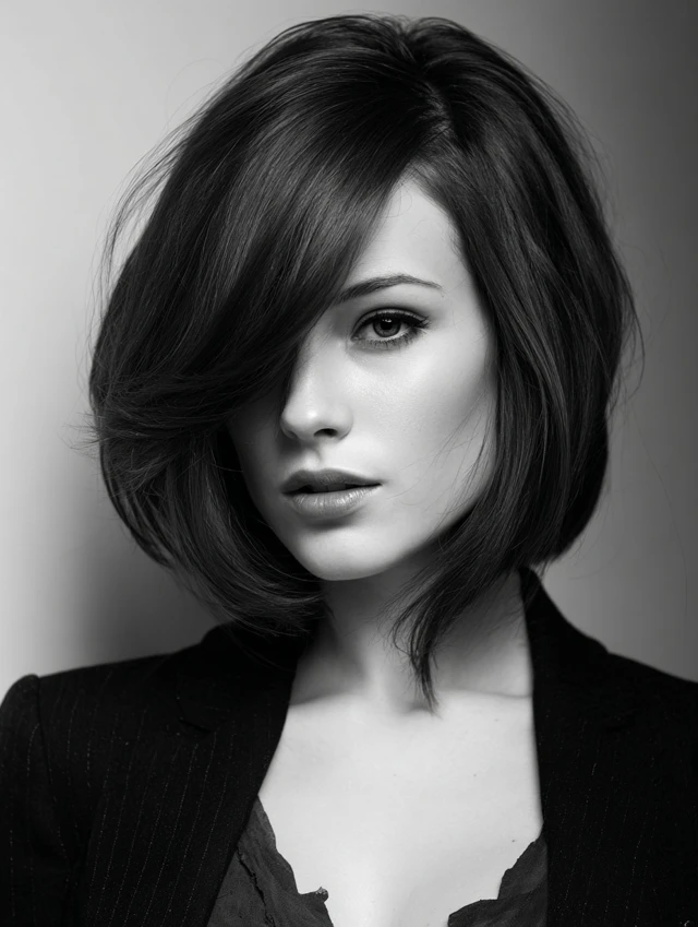 A deep side part adds asymmetry and sophistication, enhancing the bob’s angle.