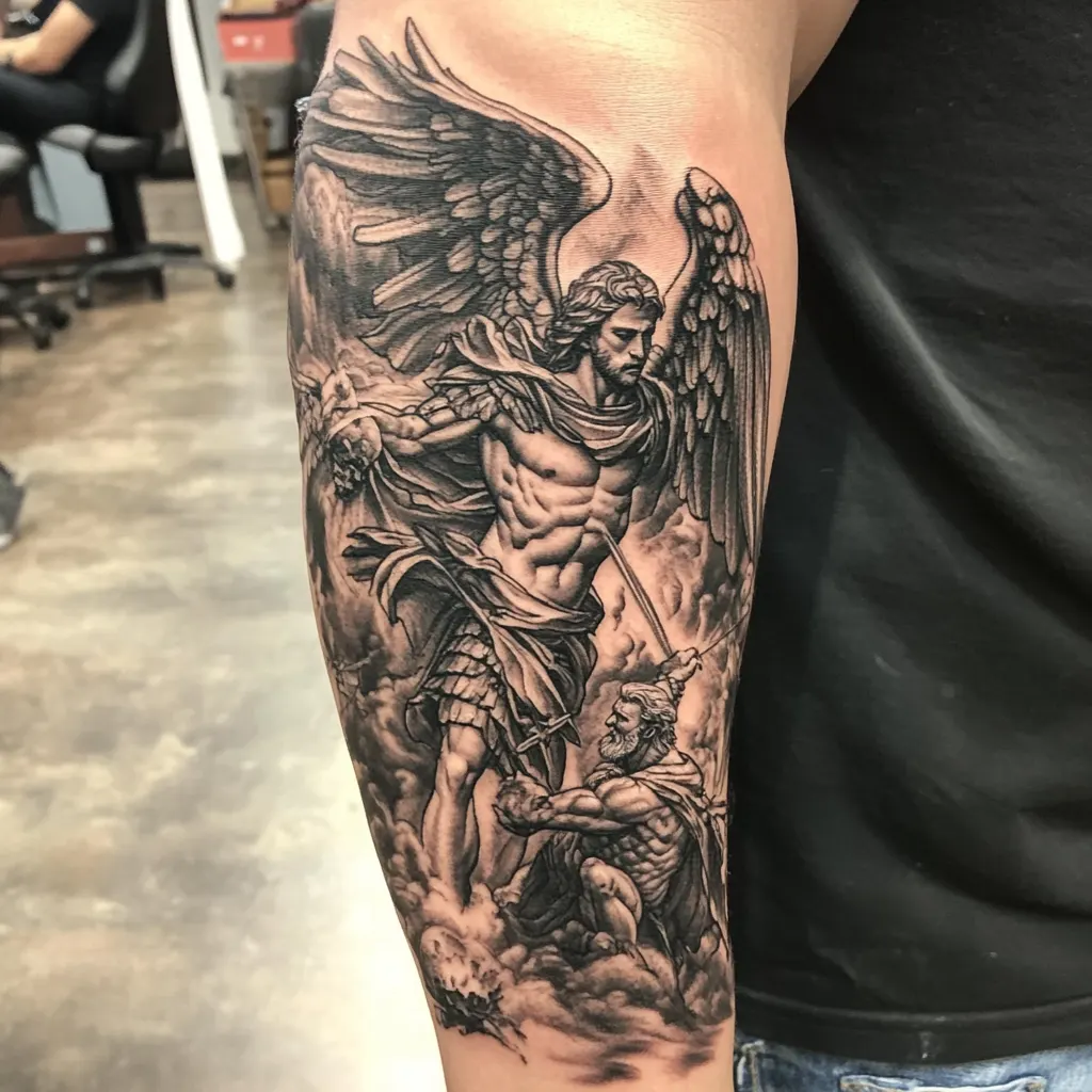 Forearms or wrists are perfect for minimalist versions—linework of his sword, a tiny wing, or a celestial symbol tied to Michael. These placements allow for daily reminders of strength, without overwhelming the overall aesthetic.