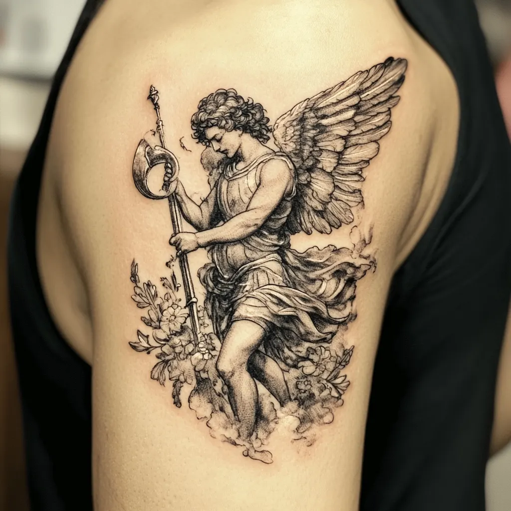 Shoulders and upper arms are also ideal, especially if you want something visible yet elegant. A side-profile of Archangel Michael with his sword raised or wings unfurled fits beautifully here. The curvature of the shoulder can enhance the dynamic energy of the design.