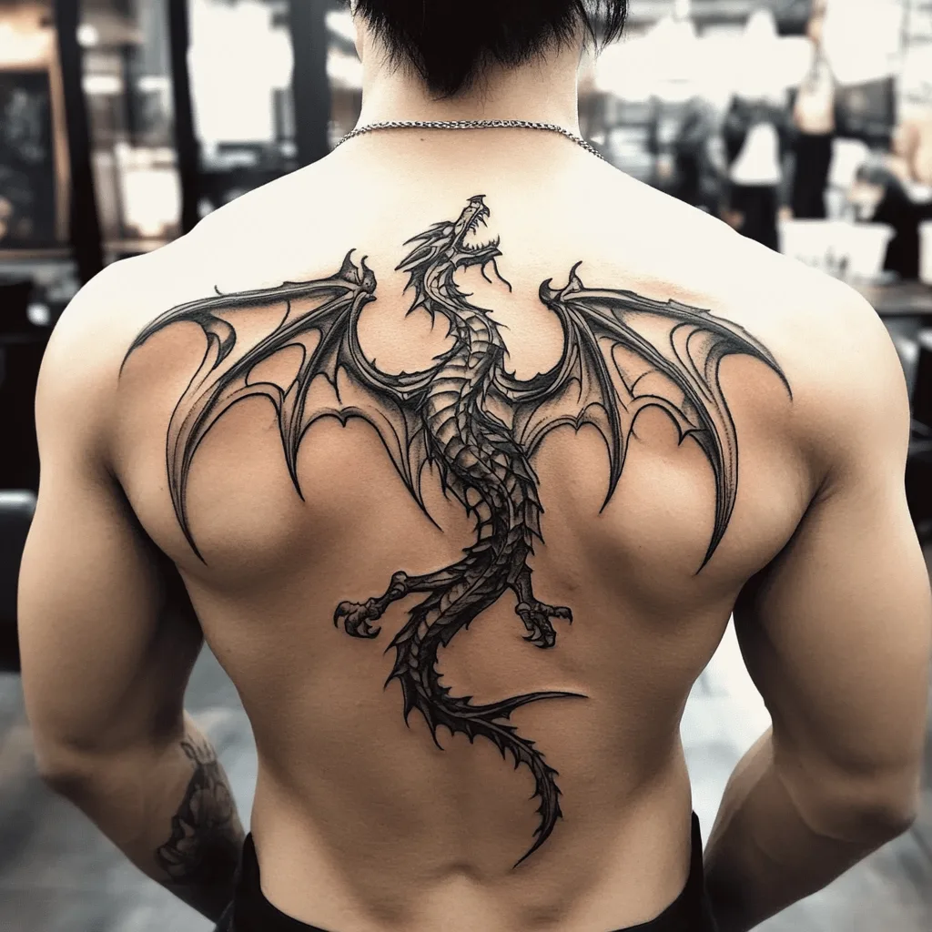 A tribal dragon tattoo on the back is a fierce and powerful symbol of strength, courage, and protection. The dragon’s intricate scales, sharp claws, and flowing tail can be wrapped around the spine, creating a dynamic design that emphasizes movement and power. The black ink used in tribal designs gives it a bold, striking look that contrasts beautifully with the natural shape of the back. This tattoo is perfect for someone who values inner strength and resilience, and it serves as a reminder to stand strong in the face of adversity.