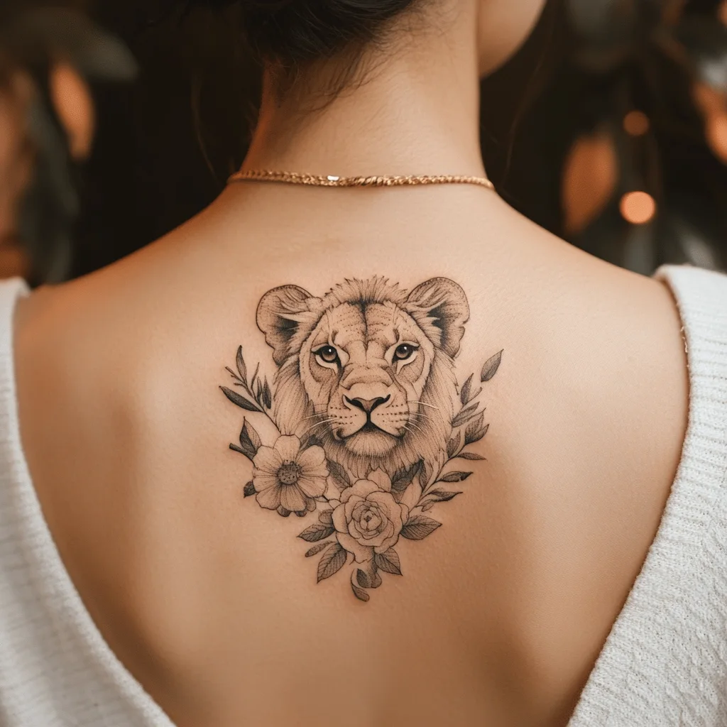 A lioness tattoo symbolizes strength, courage, and leadership. A lioness design on the back can be placed across the shoulders, with the lioness’s face or full body serving as the centerpiece. The bold lines and detailed features make this tattoo a striking representation of power and grace. As the lioness is often seen as a protector and leader, this tattoo can serve as a personal reminder of inner strength and resilience. It’s perfect for those who want to embody the qualities of leadership, courage, and confidence.