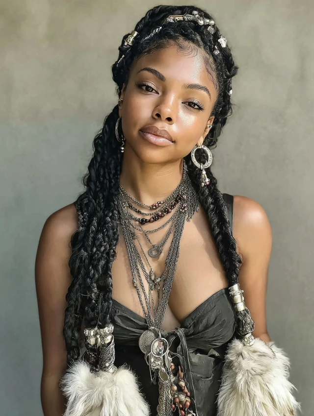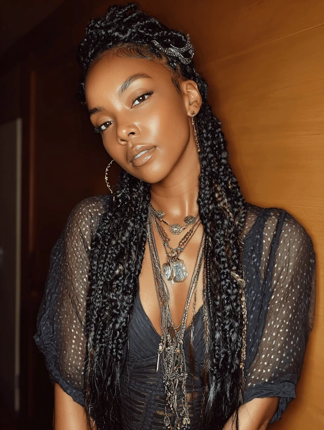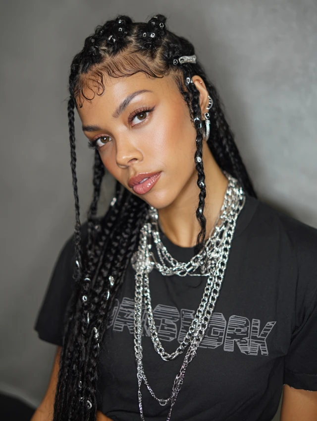 2. Baddie Knotless Braids with Accessories