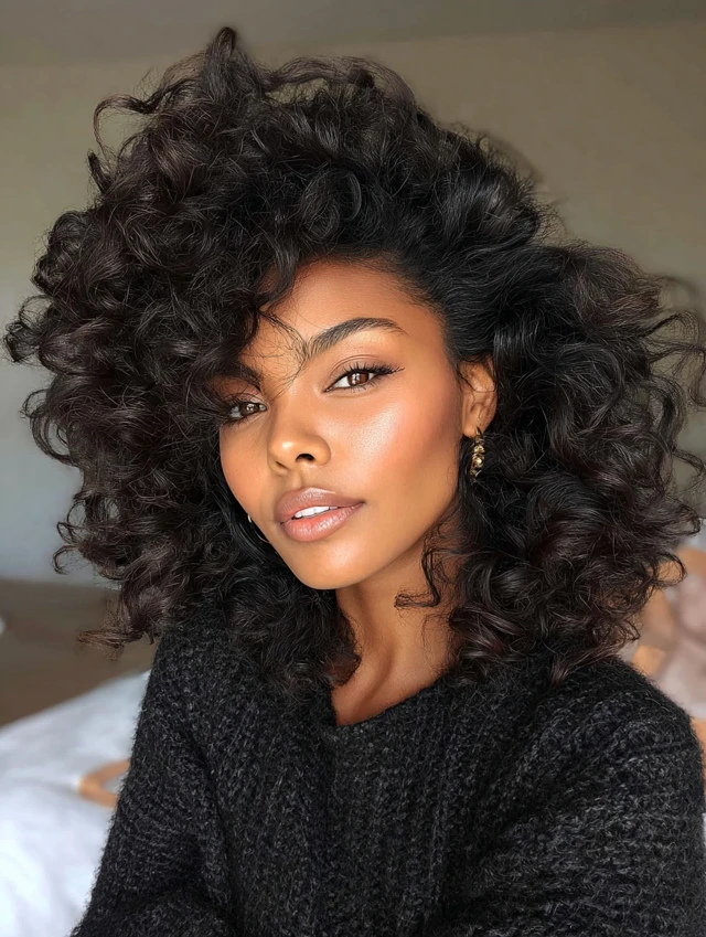 Full, fluffy curls give luxurious, feminine baddie energy — glamorous without trying too hard.