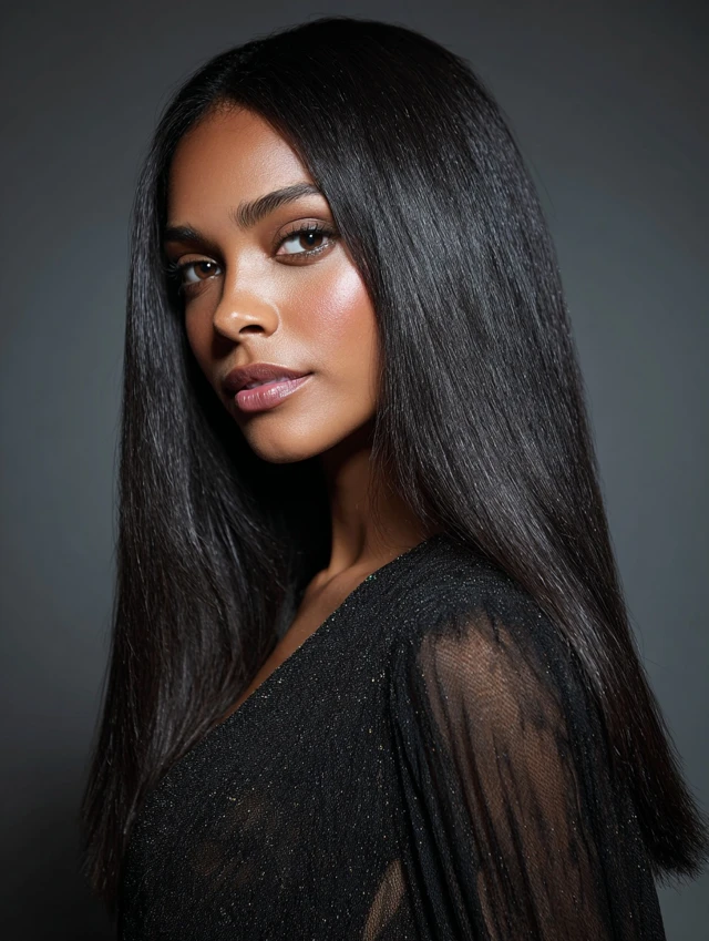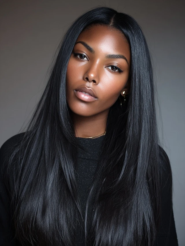 Smooth, bone-straight hair with a middle part is a baddie staple — clean, classy, and always on-trend.
