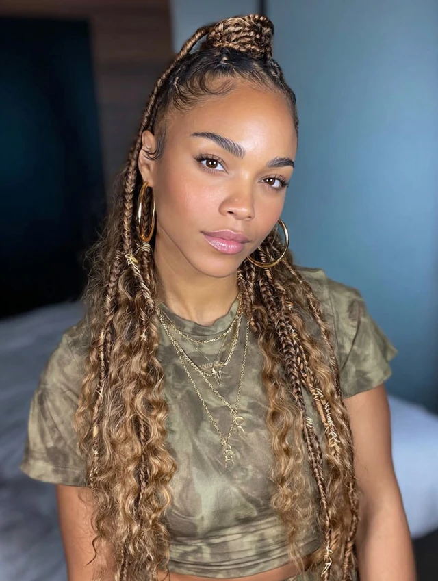 Knotless braids are clean, neat, and cute — add beads, cuffs, or colored strands and you instantly level up the baddie vibe.