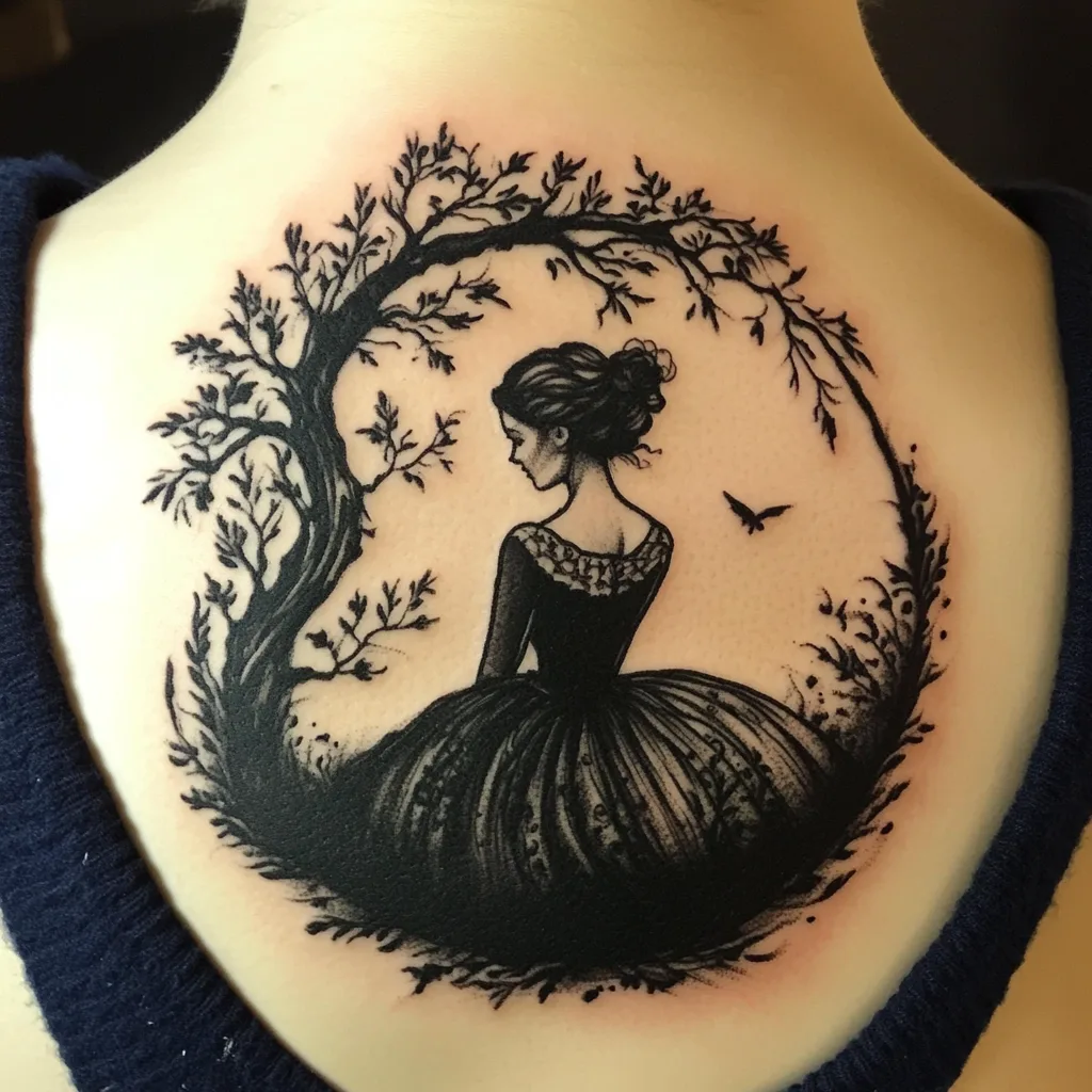 A silhouette tattoo inspired by a classic novel is a unique tribute to literature. Whether it’s Alice falling down the rabbit hole, the Little Prince standing on his tiny planet, or the Hogwarts castle, this tattoo reflects a deep emotional connection to a beloved story. The design can be minimalistic or highly detailed, depending on personal preference. Ideal placements include the arm, calf, or back. This tattoo serves as a reminder of the characters and lessons that have shaped one’s love for reading. It’s a great way to carry a piece of literary history on your skin.