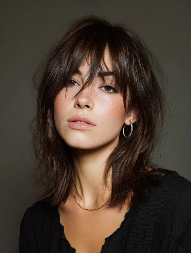 This version uses uneven, choppy layers to create a cool, tousled, rock-chic vibe.