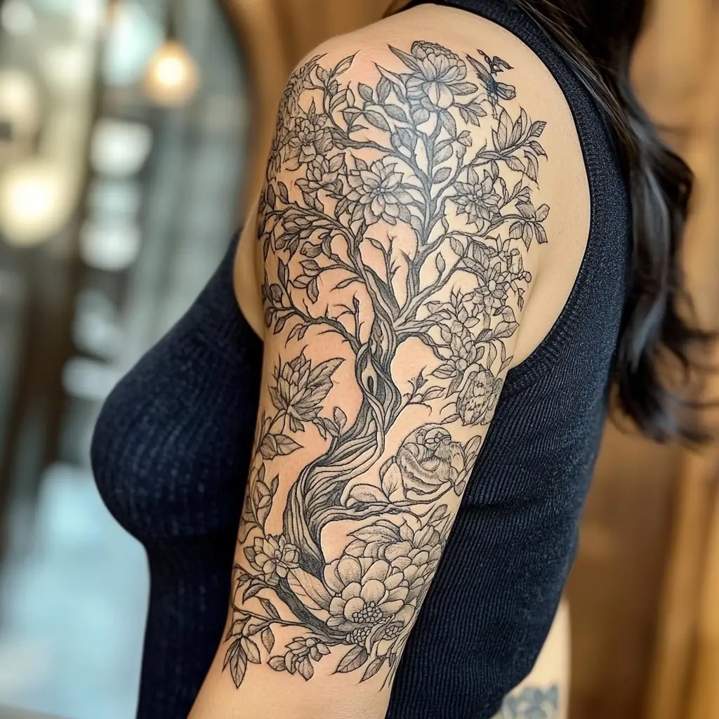 The tree of life is a symbol of interconnectedness, growth, and strength, making it a meaningful tattoo for many women. Black ink emphasizes the detailed branches and roots, creating a striking design that symbolizes both personal and spiritual growth. A tree of life tattoo can be placed on the forearm, elbow, or upper arm, with the roots spreading downward and the branches extending upward. This design can represent resilience, the cycles of life, or the deep connection between all living beings. It’s an elegant yet bold way to wear a tattoo that holds great personal significance.