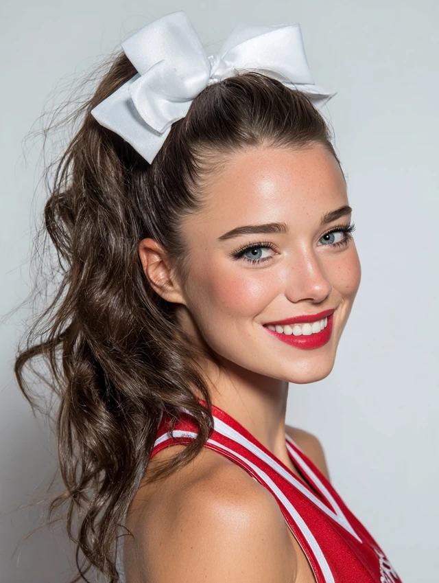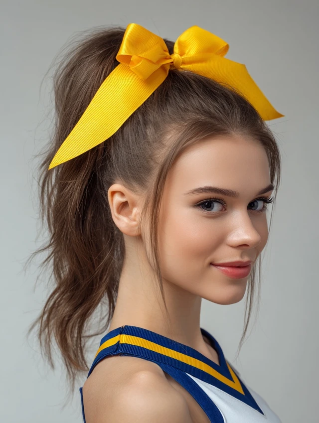 1. High Cheer Ponytail With Bow (Classic & Energetic)