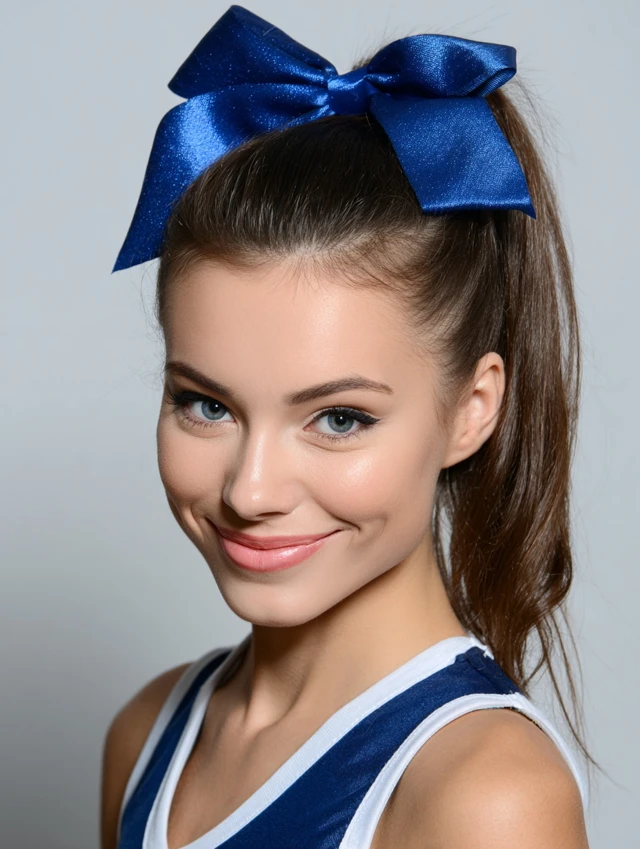 - Place a large bow at the base of the ponytail for a classic cheer look.