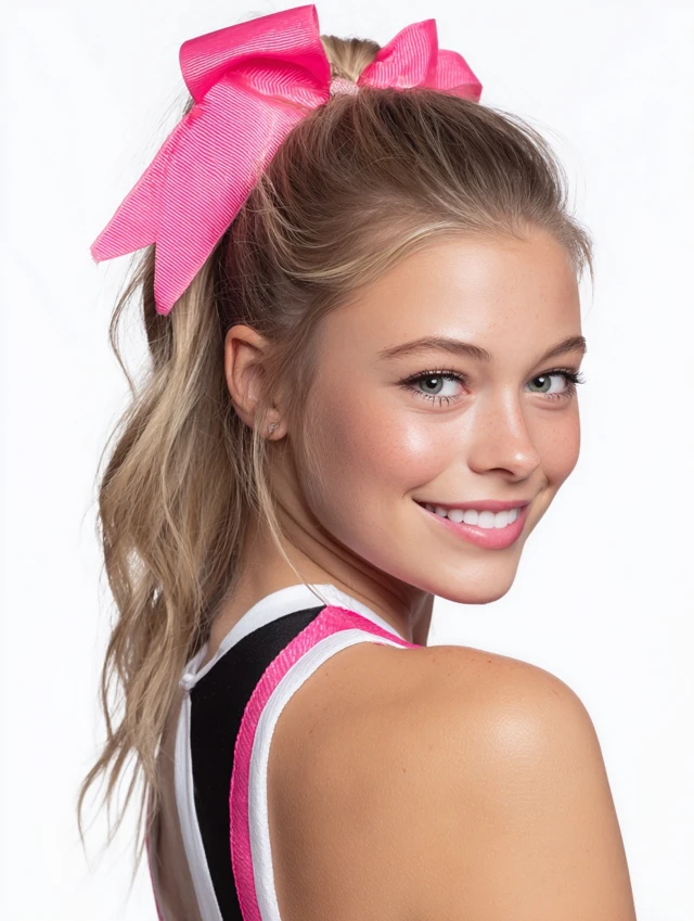 The signature cheer ponytail is high, bouncy, and big — perfect for movement and team spirit.