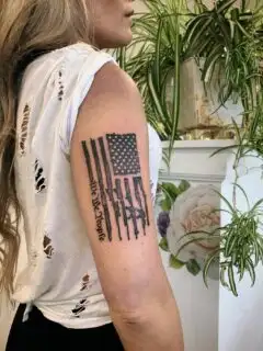 The flowing arrangement of the butterflies creates movement, giving the tattoo a dynamic and chic appearance. This design is perfect for women who want to combine meaningful personalization with eye-catching artistry, blending beauty, symbolism, and individuality in one stunning piece.