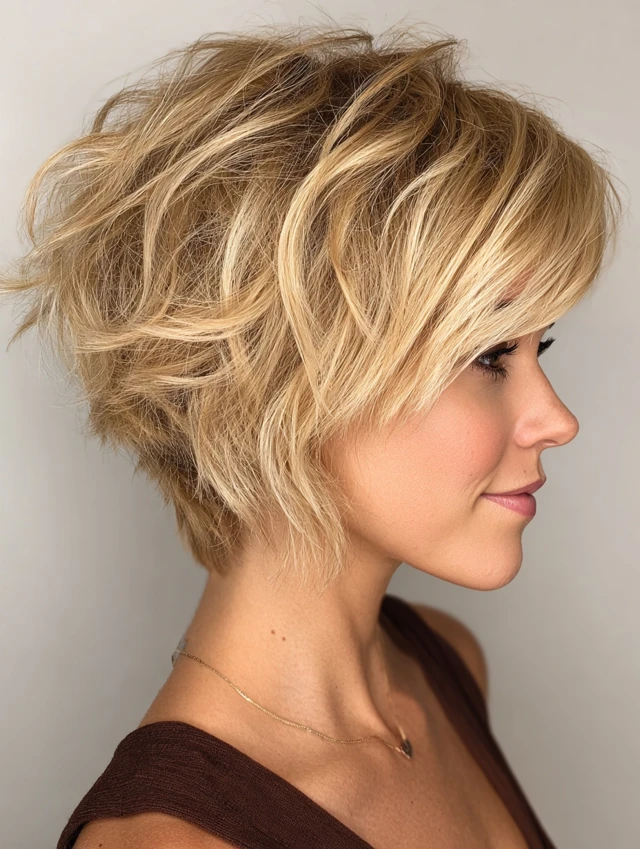 Shorter lengths instantly make fine hair appear thicker, while choppy ends add lightweight, youthful movement.