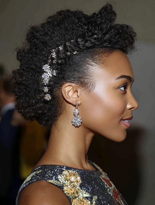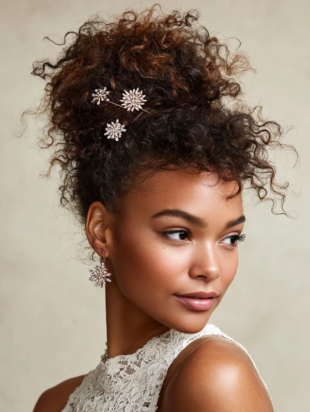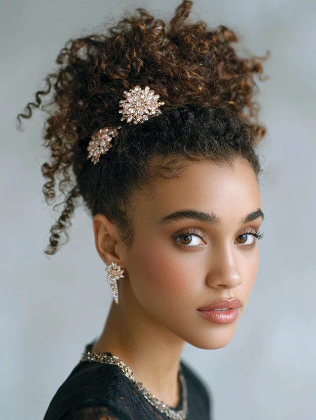 5. Curly or Natural Hair Updo With Sparkly Pins