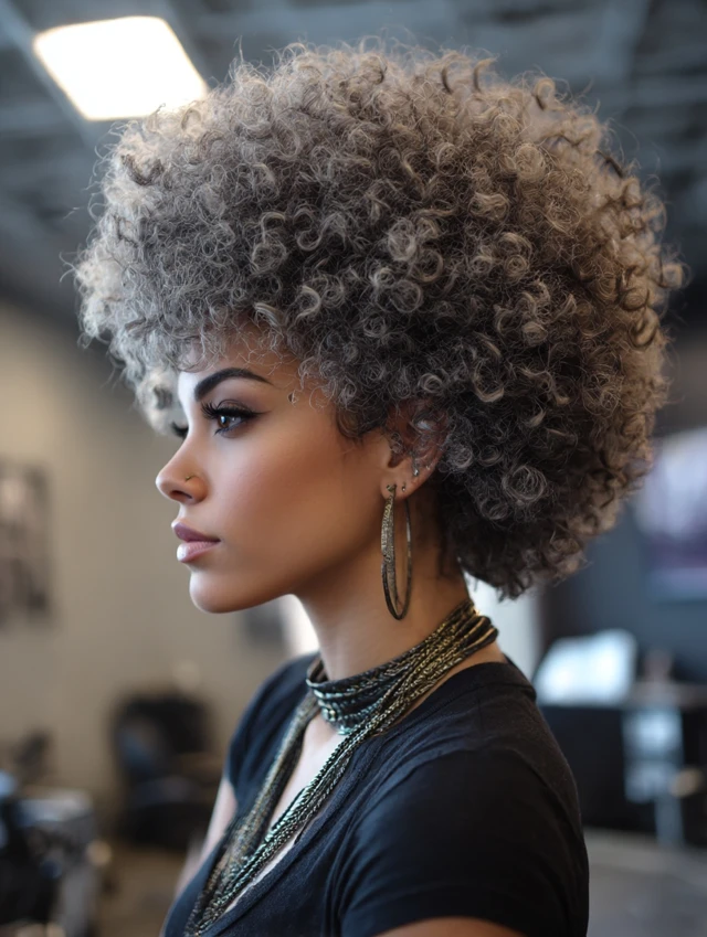 For a more relaxed version, apply a mousse or curl cream to damp hair, scrunch gently, and air dry. The layers will fall into their natural rounded shape as the hair dries, creating a softer, more casual cloud effect.