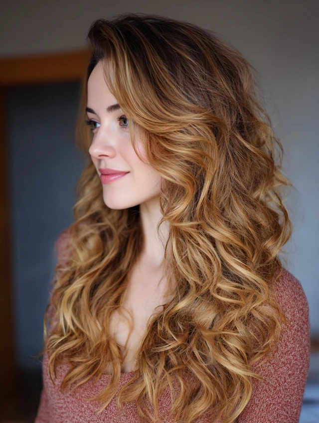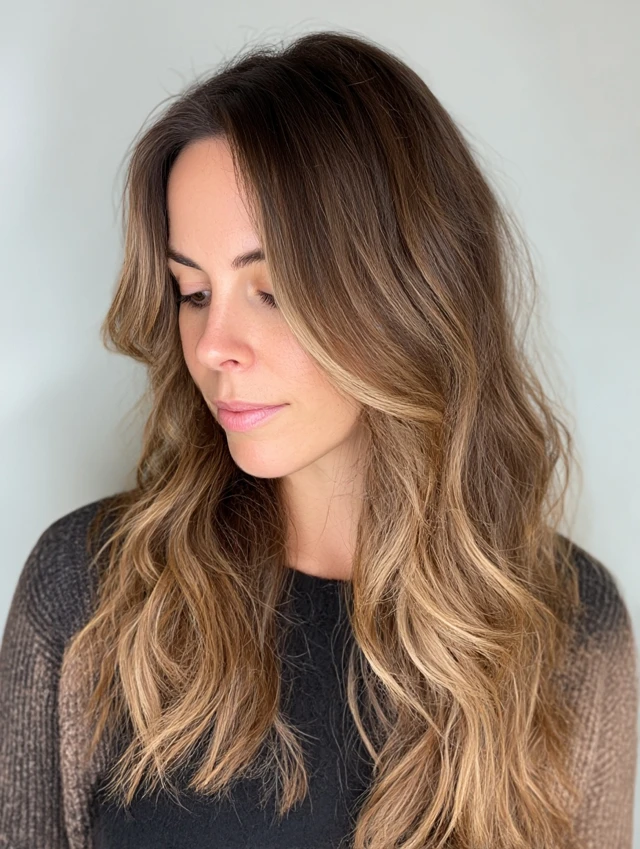 Soft balayage — The gradual color of a balayage follows the rounded layers naturally, adding depth and dimension.