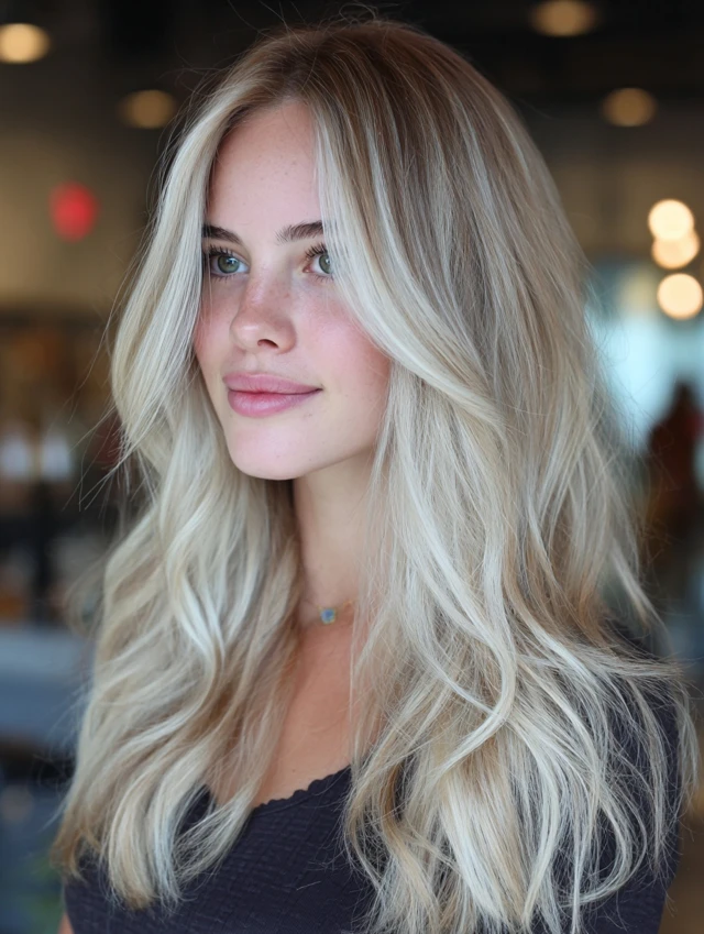 Whether styled straight, wavy, or layered, this look offers sophistication, brightness, and effortless charm.