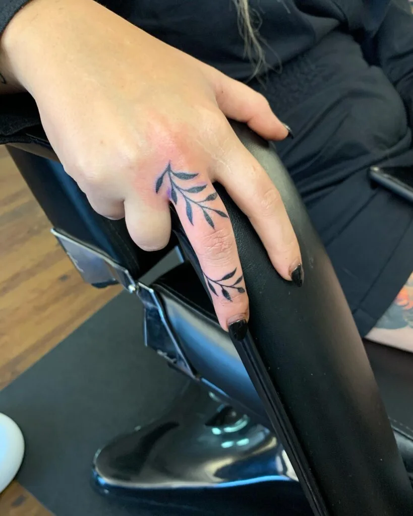 Finger tattoos are unique and always visible, allowing this design to stand out as both personal and fashionable. It works as a statement piece or alongside other tattoos for a harmonious look. This leafy design blends simplicity with symbolism, making it a graceful choice for those who value natural beauty.