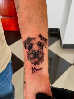 Despite its simplicity, the tattoo radiates strong emotion, making it a timeless and meaningful piece. Its clean style ensures it will remain striking over time, appealing to those who prefer subtle yet expressive designs. Placed on the forearm, it stands as a daily reminder of unconditional love and the joy of companionship shared with a cherished furry friend.