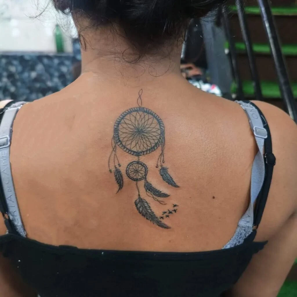 For women, placement is key—dreamcatchers look stunning on the thigh, back, ribs, and shoulder, where the feathers and details can flow naturally. Smaller versions on the wrist, ankle, or behind the ear create a more subtle yet elegant look.