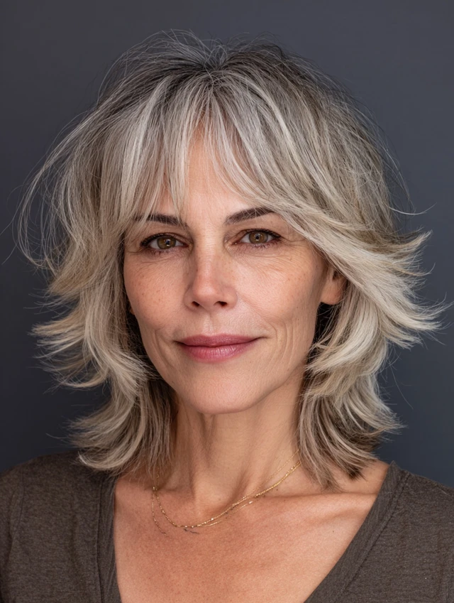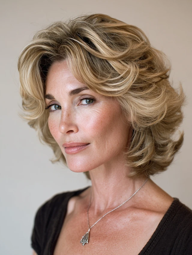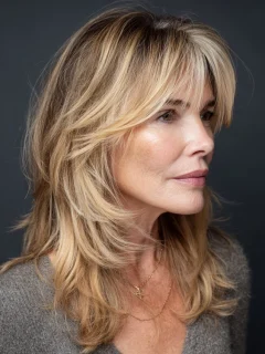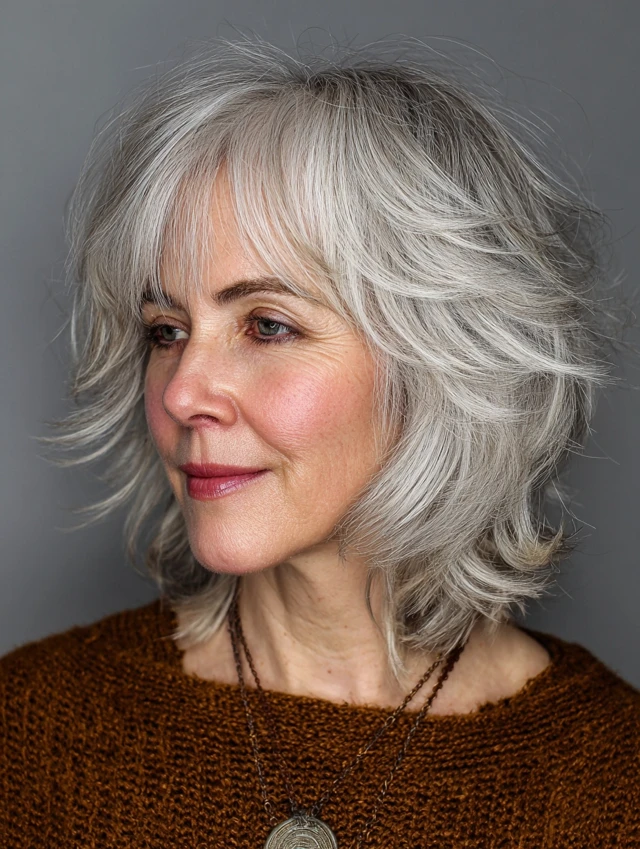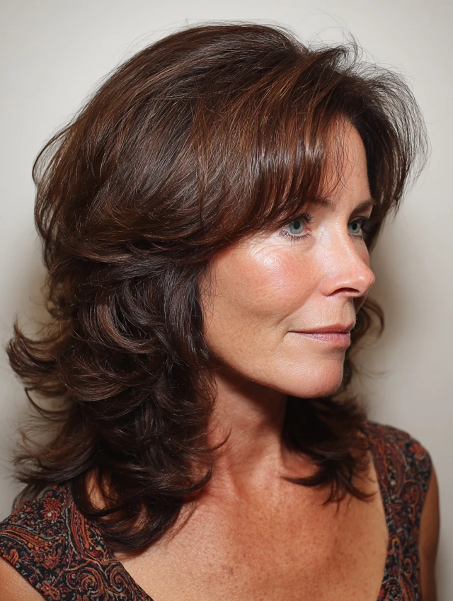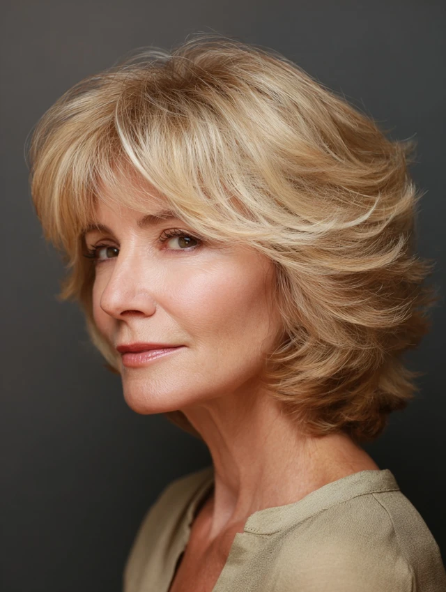 Feathered hairstyles for older women offer a timeless way to add softness, movement, and volume. The airy layers create a flattering and easy-to-maintain look.
