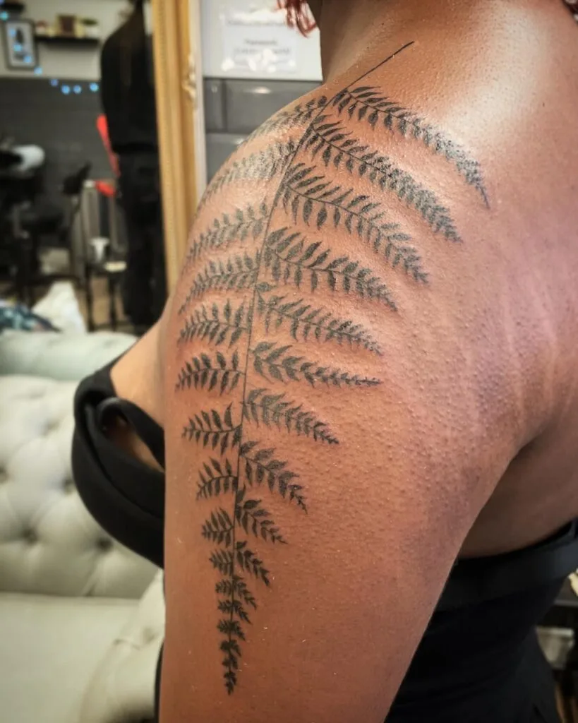5. Flowing Shoulder Fern Tattoo