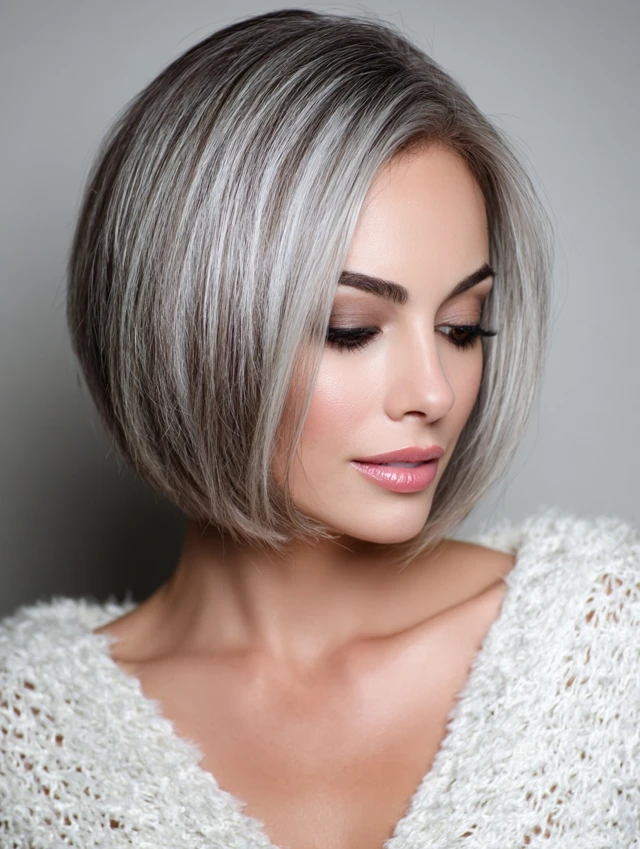 2. Sleek Bob with Gray and Ash Brown Lowlights