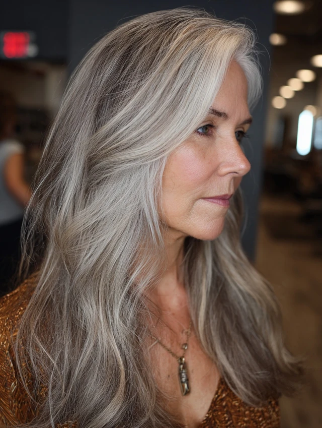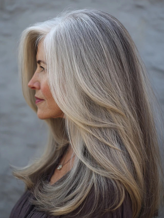 Gray hair with lowlights is for women over 50 who love elegance, dimension, and timeless style. It’s for those who want hair that’s polished, luminous, and easy to maintain.