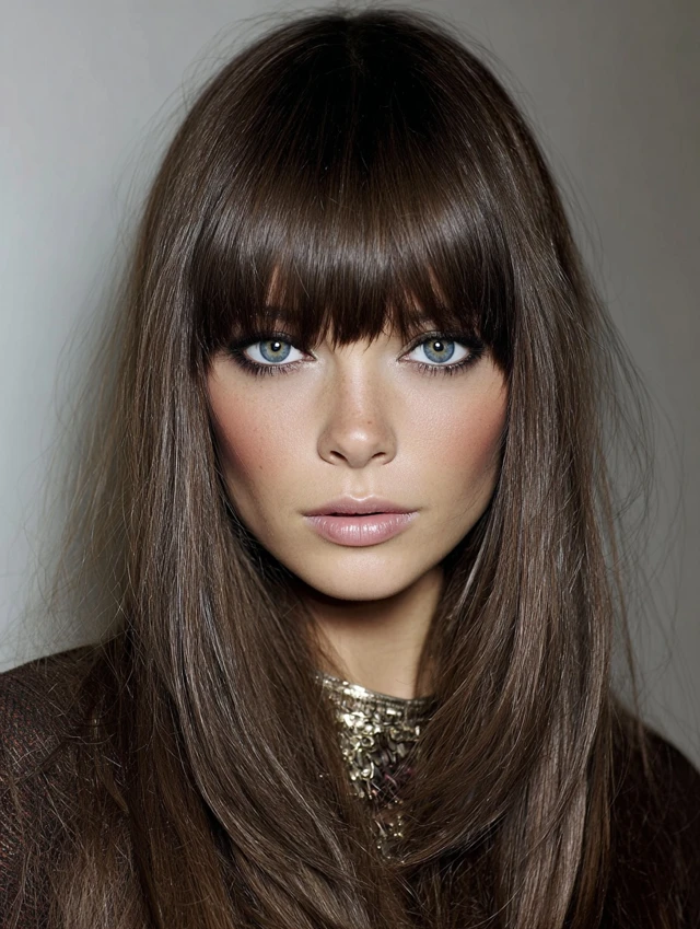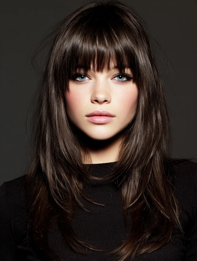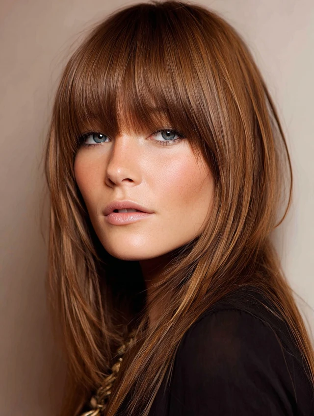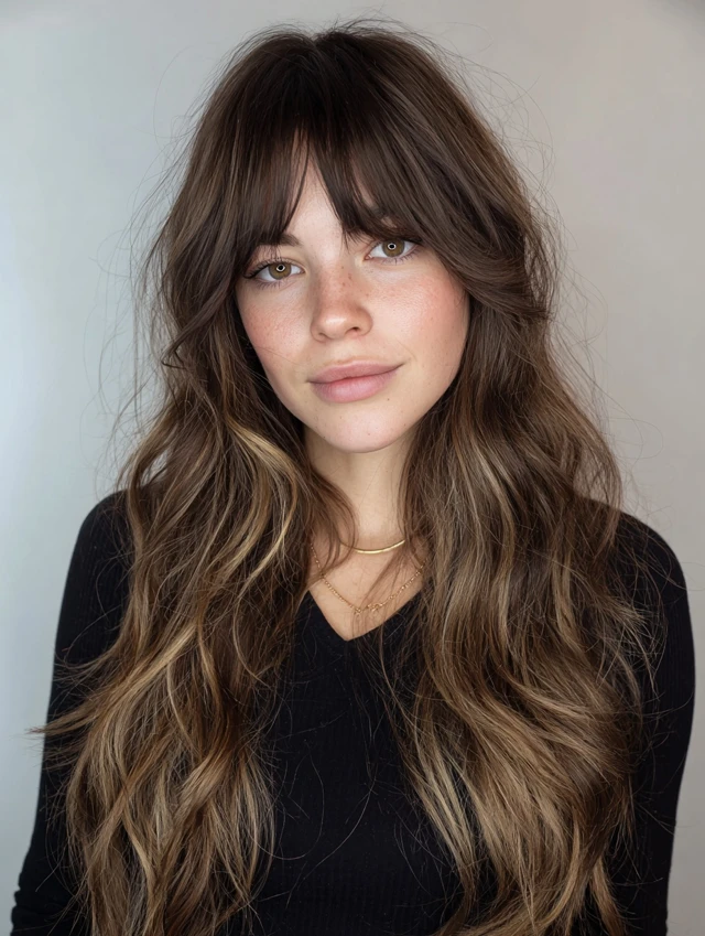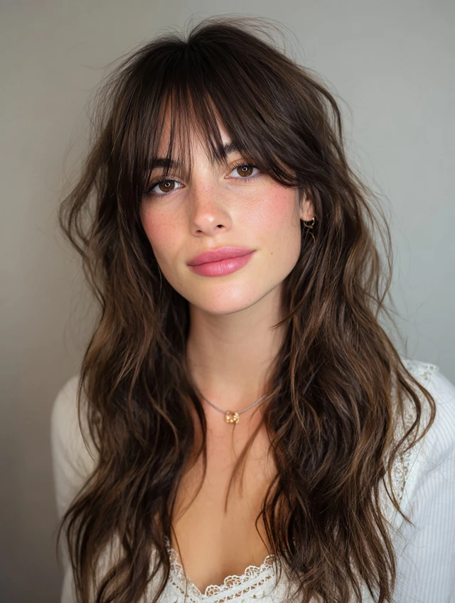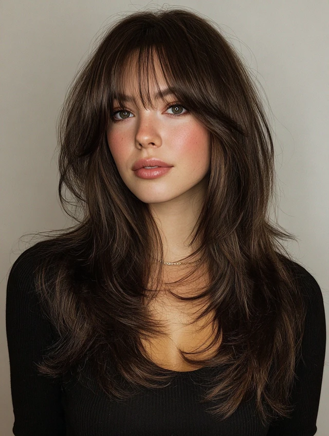 Why It Works: Light bangs soften the forehead without feeling heavy.