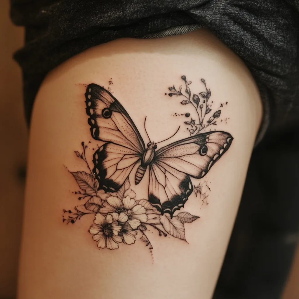 A butterfly or moth tattoo on the hip bone represents transformation, freedom, and change. Butterflies are often associated with rebirth and personal growth, making them a meaningful tattoo choice. Moths, though lesser-known, symbolize resilience and determination, as they are drawn to light even in the darkest times. The placement on the hip bone adds an element of mystery and sensuality, making the design both personal and visually striking. You can opt for a simple black outline for a minimalist approach or choose vibrant colors to highlight the beauty of the wings. This tattoo is ideal for those embracing change.