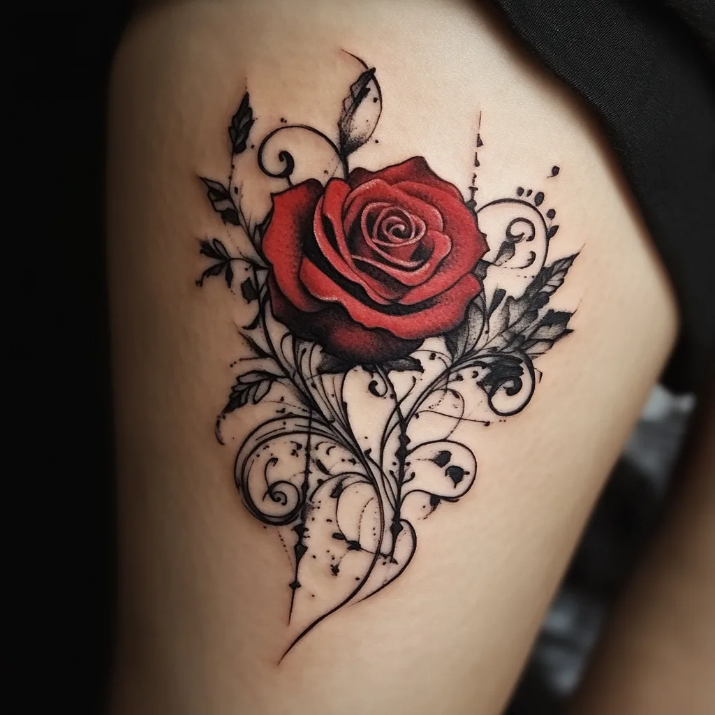 Want something more dramatic? Designs that start at the hip and flow upward toward the ribs or downward to the thigh create a dynamic, sensual movement. These are great for vines, dragons, or symmetrical art that tells a story.