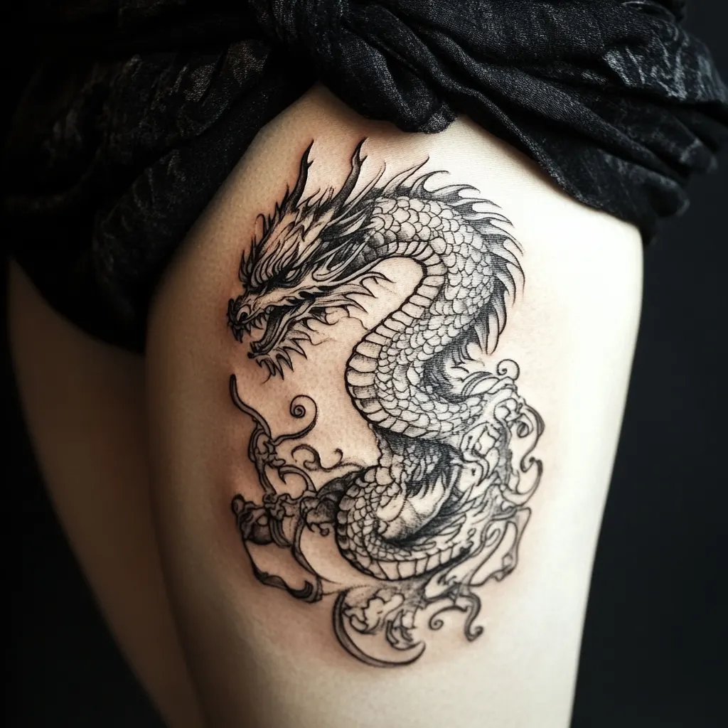 Dragons symbolize power, wisdom, and protection, and in 2025, dragon tattoos are making a major comeback, especially on the hip and thigh. A long, winding dragon that follows the body’s curves creates a stunning and fierce aesthetic.
