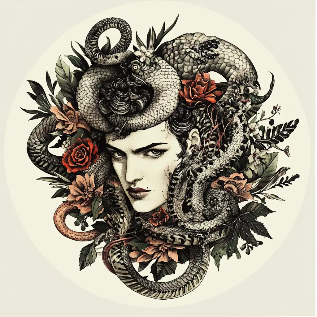 The Medusa tattoo has gained popularity as a symbol of female empowerment, resilience, and strength. A hip placement gives it a sensual, artistic appeal, often paired with Greek mythology-inspired elements.