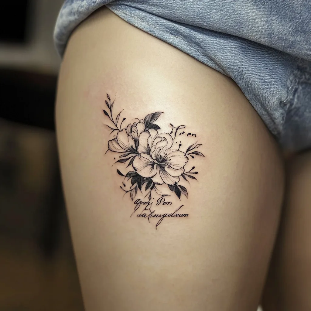 A floral vine tattoo that wraps around the hip and thigh is an elegant and feminine choice. This design creates a beautiful flow along the curves of the body, making it perfect for those who want something graceful yet impactful. Popular flowers for 2025 include roses, peonies, and wildflowers, with fine-line detailing and soft shading to enhance the natural aesthetic.