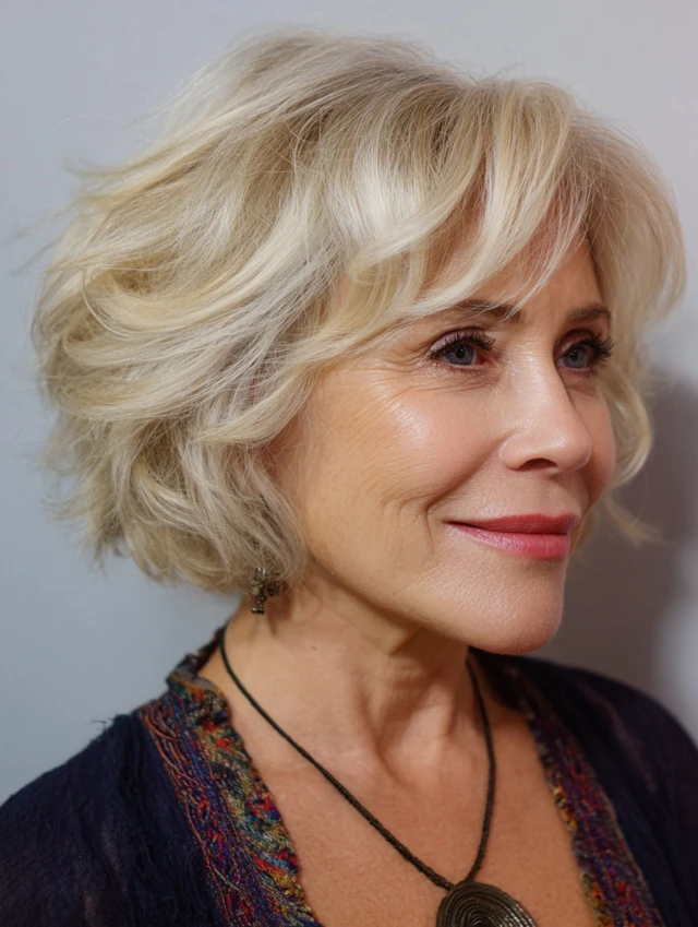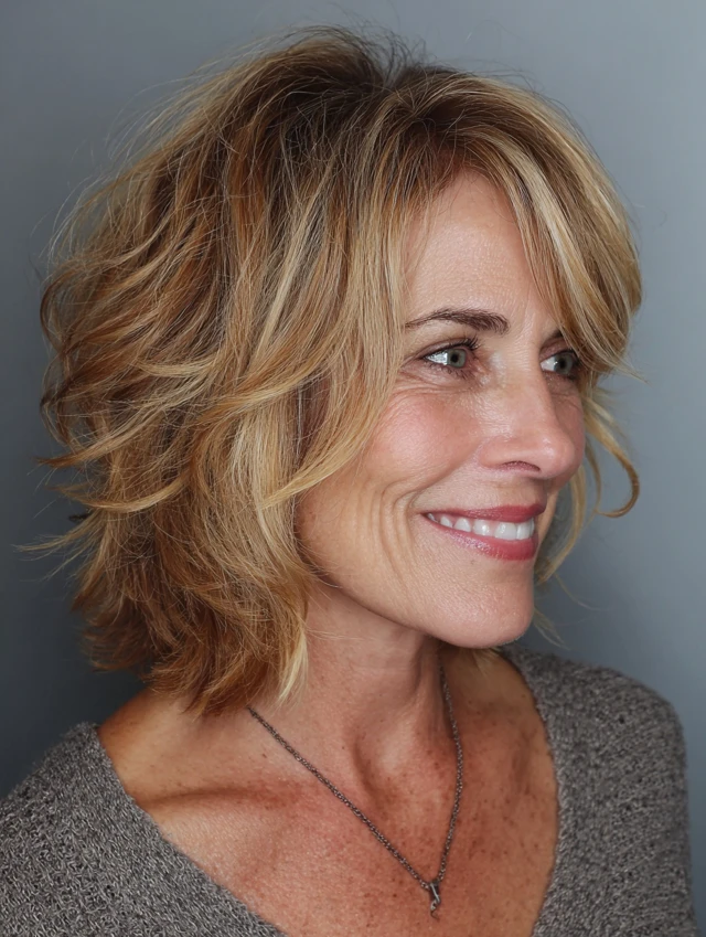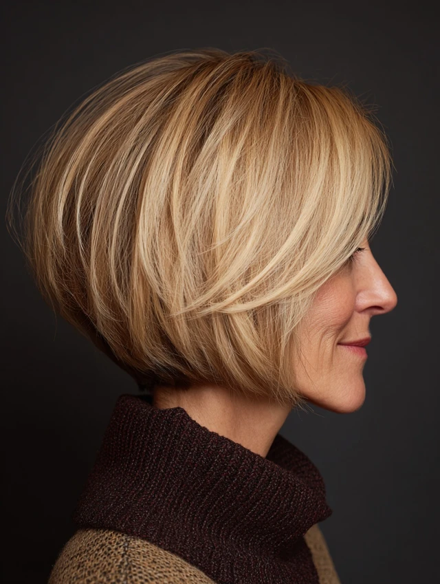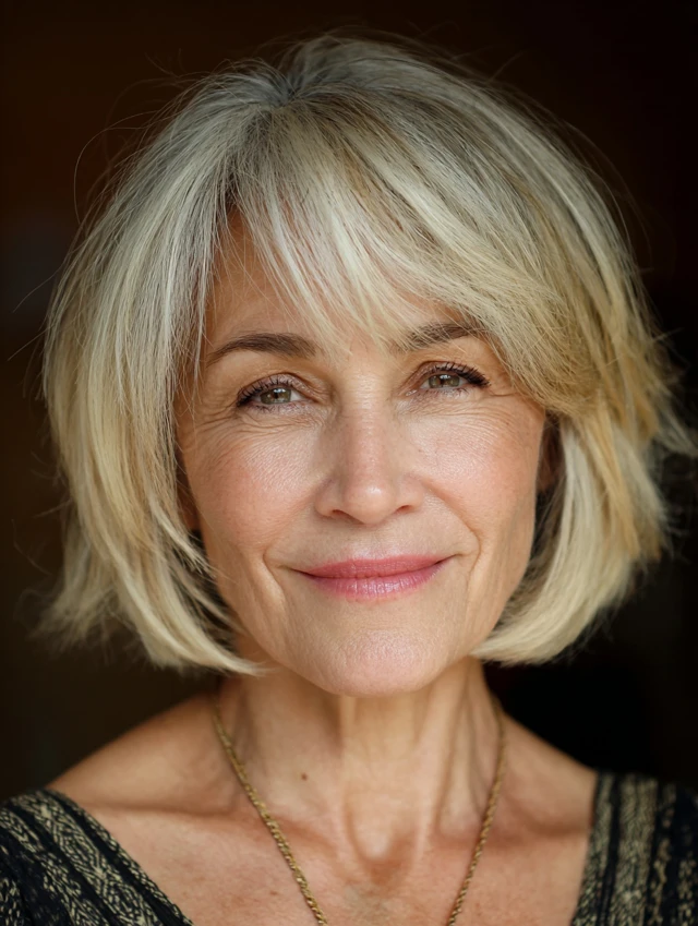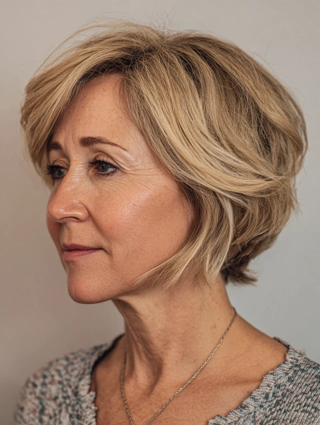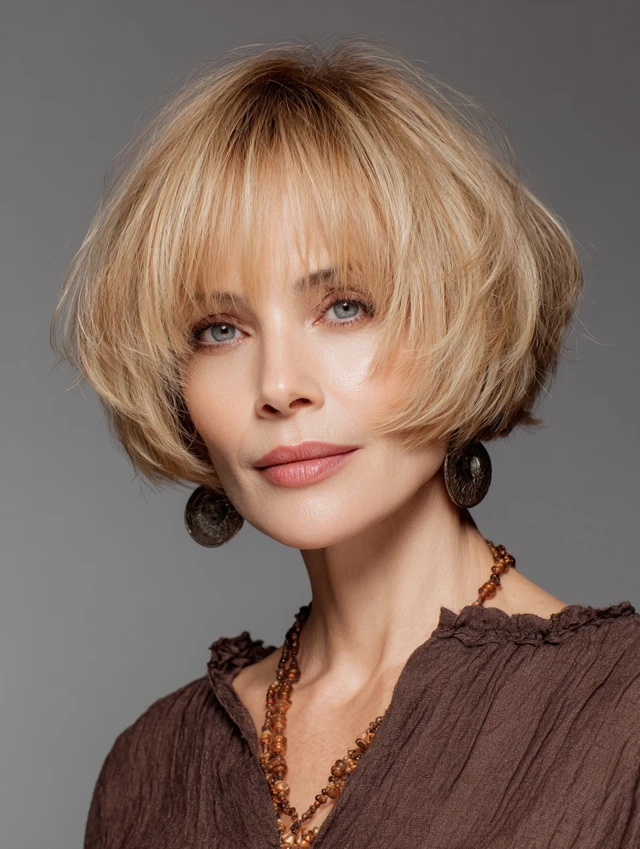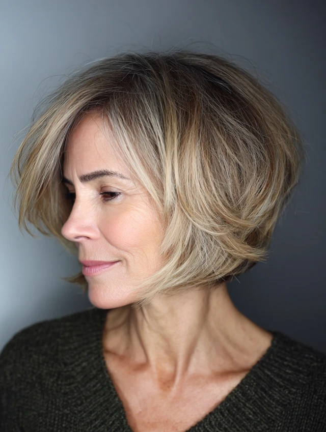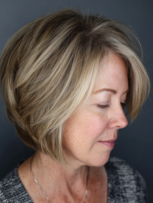 Layered bob hairstyles for women over 50 offer a perfect combination of structure, movement, and versatility. The layers add dimension while the bob shape keeps the look polished.