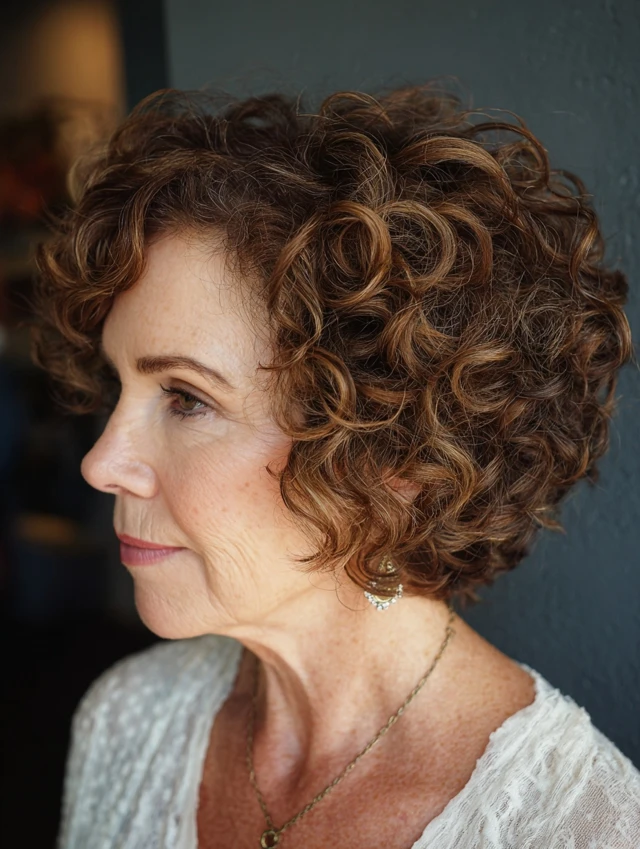 A curly layered bob enhances natural curls while shaping them through layering. The curls add volume and movement.