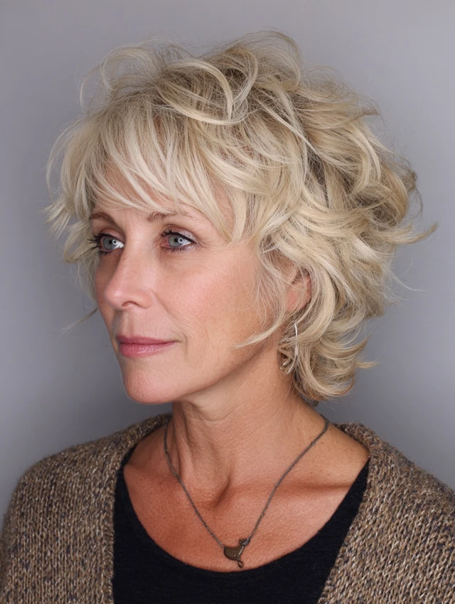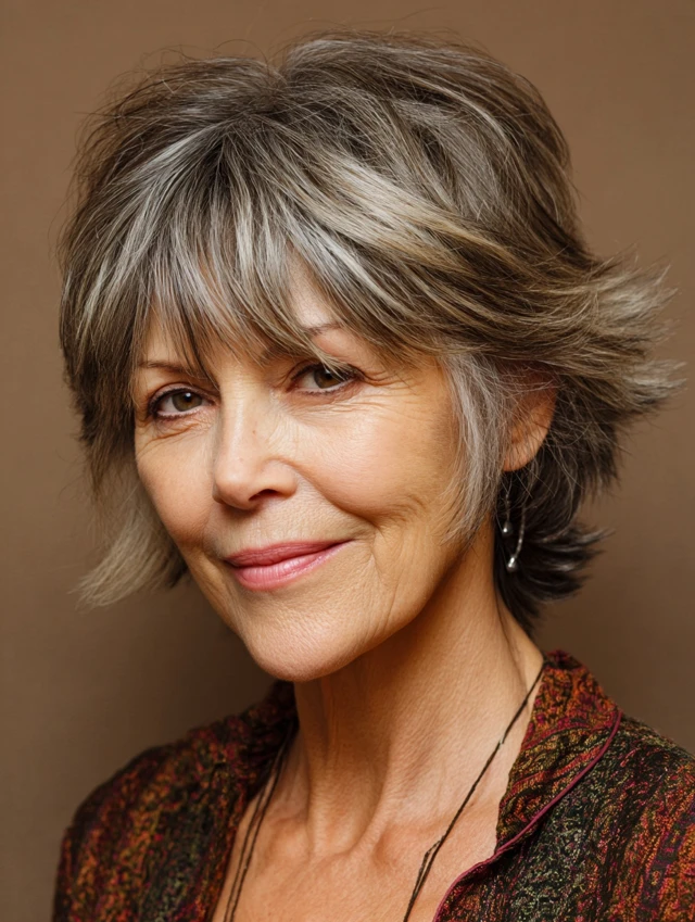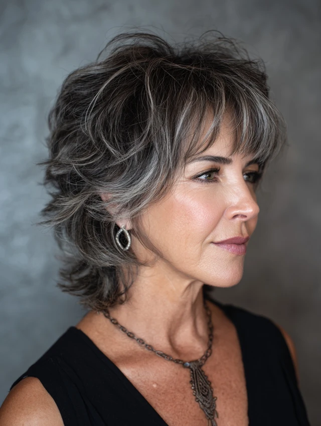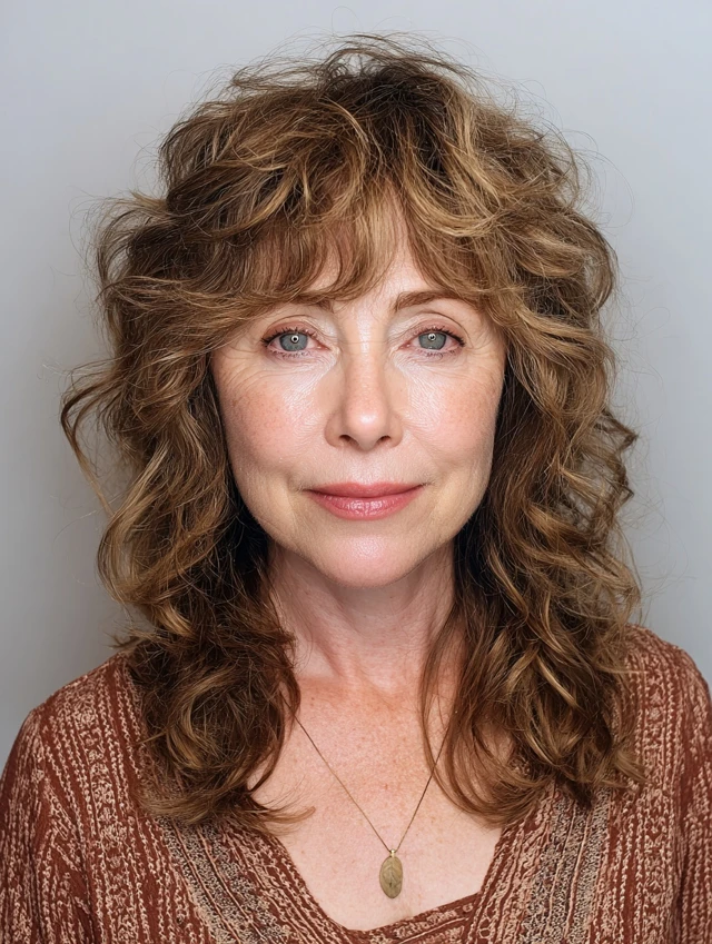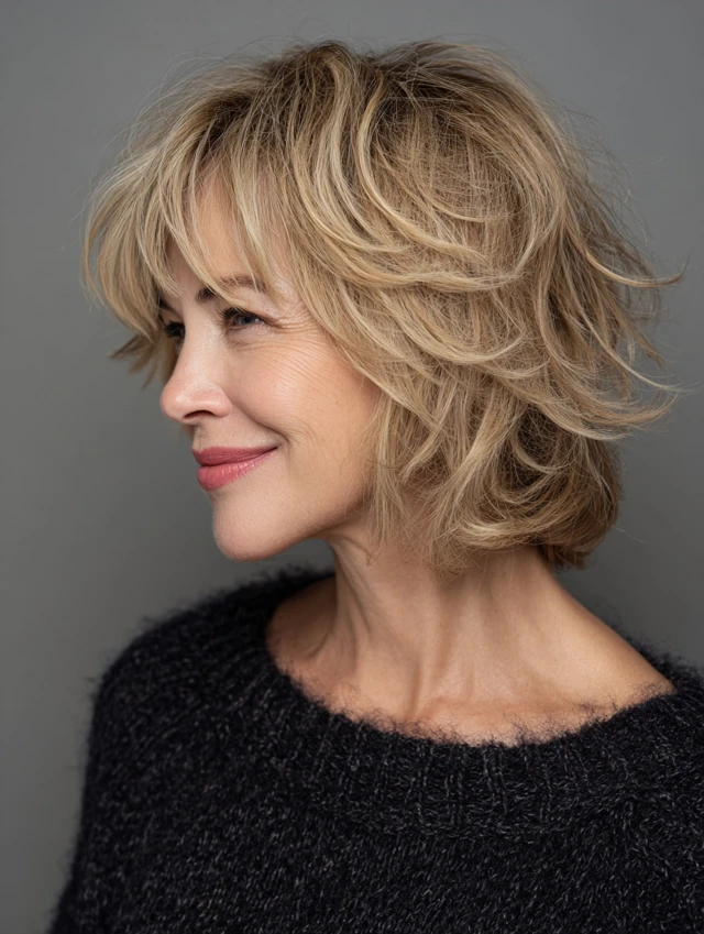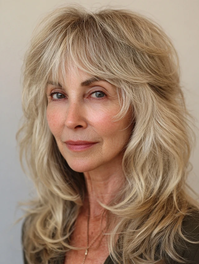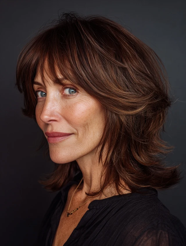 Layered shag hairstyles for women over 50 offer a perfect blend of texture, volume, and ease. The varied layers create movement while keeping the style light and modern.