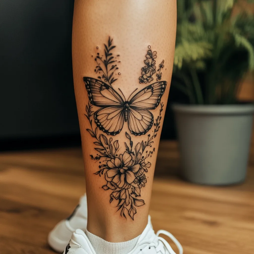 Calf Tattoos: The calves are a great option for visible but still somewhat private tattoos. Calf art can face inward or outward, wrap around, or run vertically for a sleek effect. Think feminine blackwork, botanical designs, or statement quotes.
