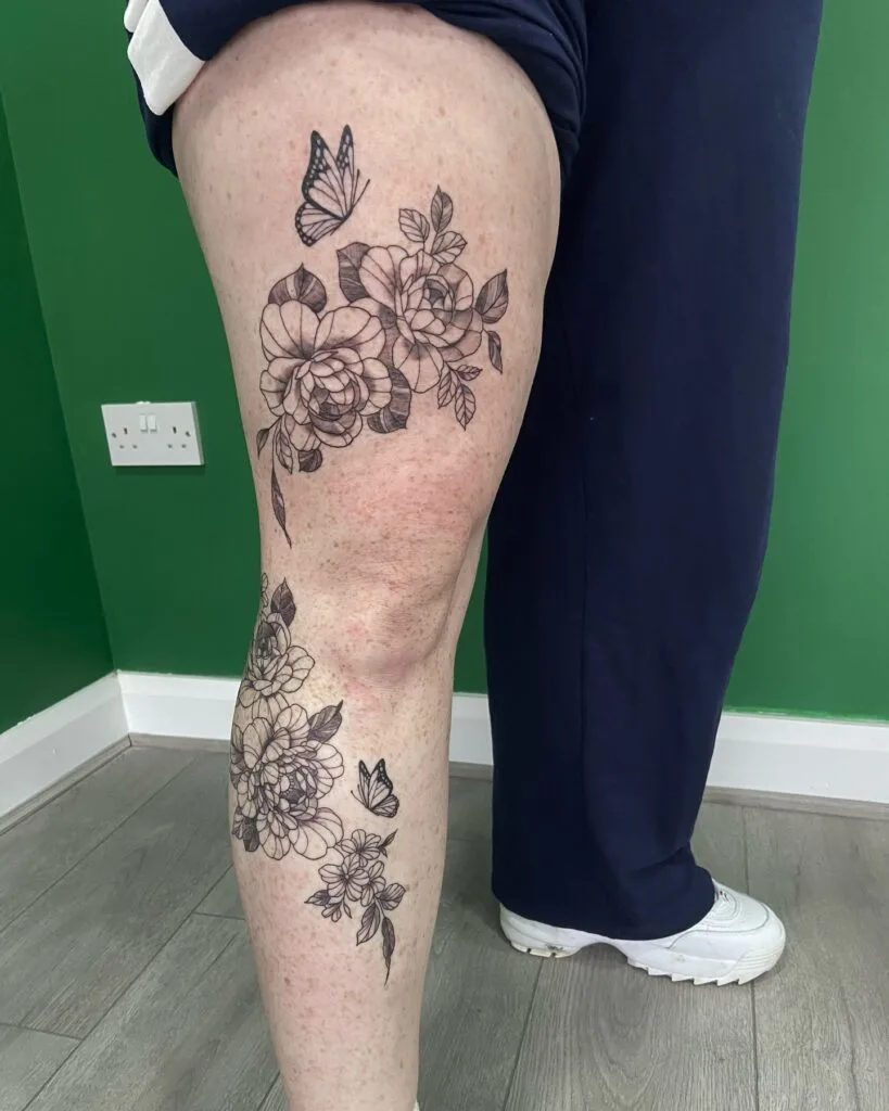 Pain tolerance is subjective, but generally, areas with more flesh (like the thighs or calves) are less painful than bony areas like the shins, knees, or ankles. The outer thigh tends to be one of the more comfortable places to get tattooed, while the ankle or foot might be more intense due to thinner skin and proximity to bone. If you’re concerned about pain, talk to your artist—they can help you prepare mentally and physically for the session, or even break up large pieces into multiple appointments.