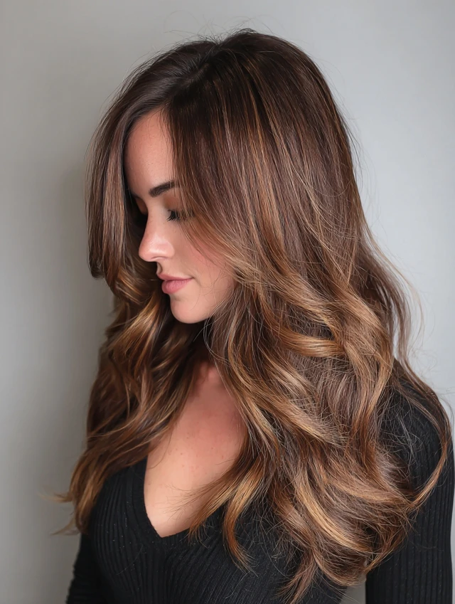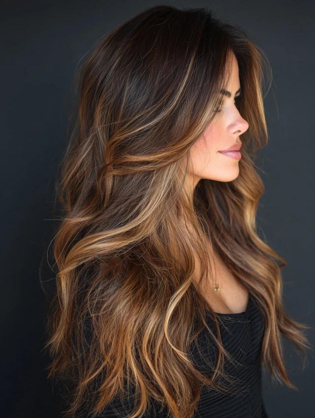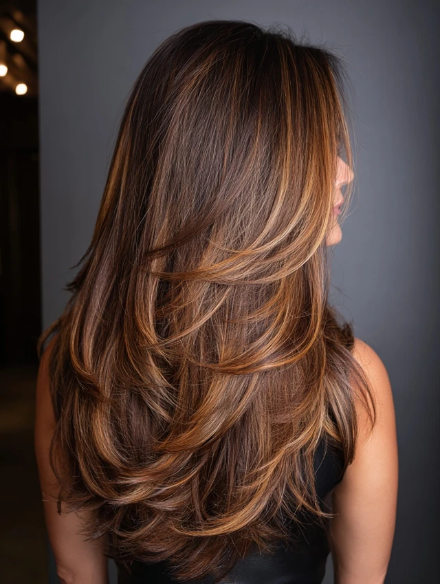 Layers allow light to hit the caramel highlights naturally, creating depth and dimension.