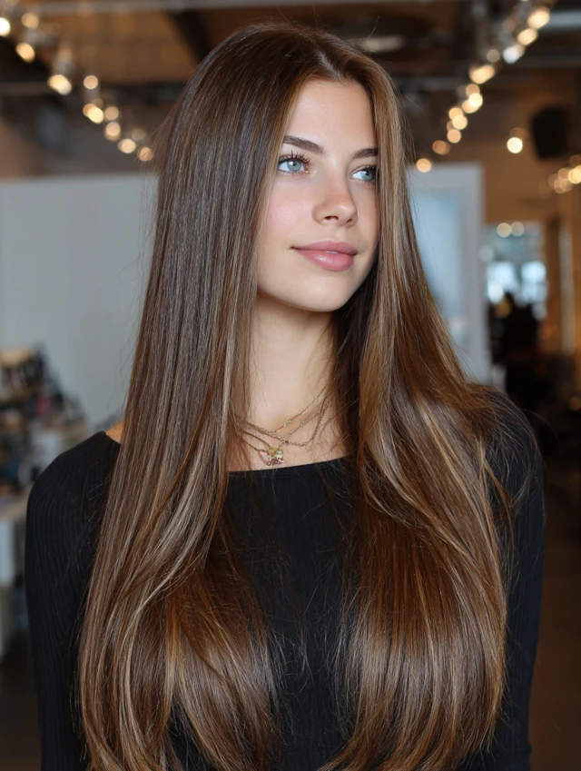 Color adds personality to long hair instantly. Teens can have fun with soft highlights, subtle balayage, pastel streaks, or peekaboo tones. If you’re not into dye, you can still play with temporary color sprays or hair chalk for weekends.
