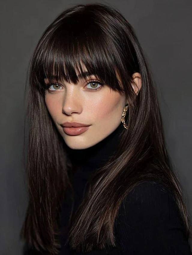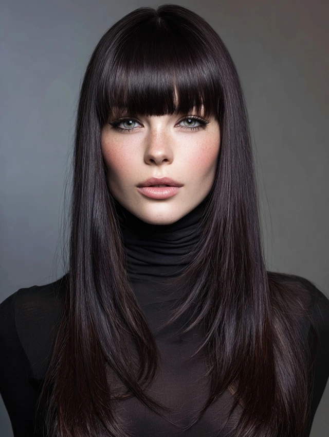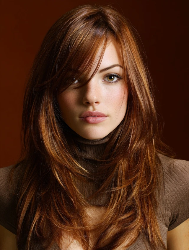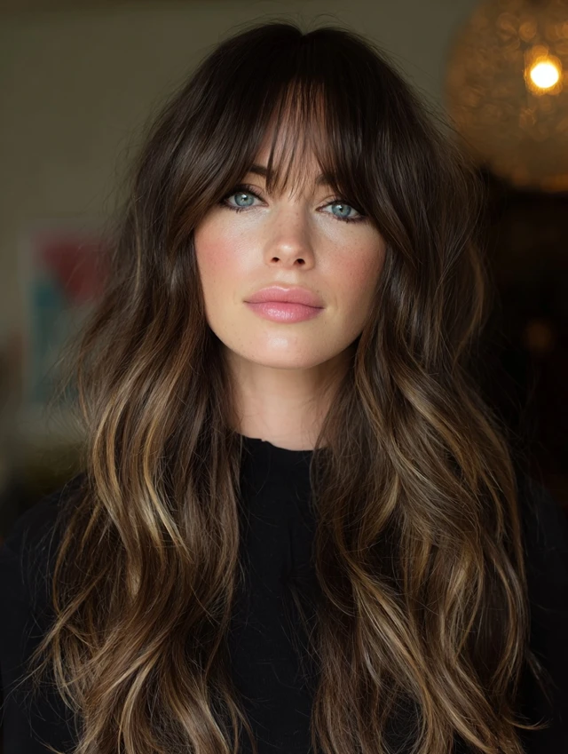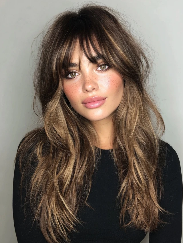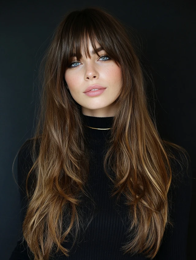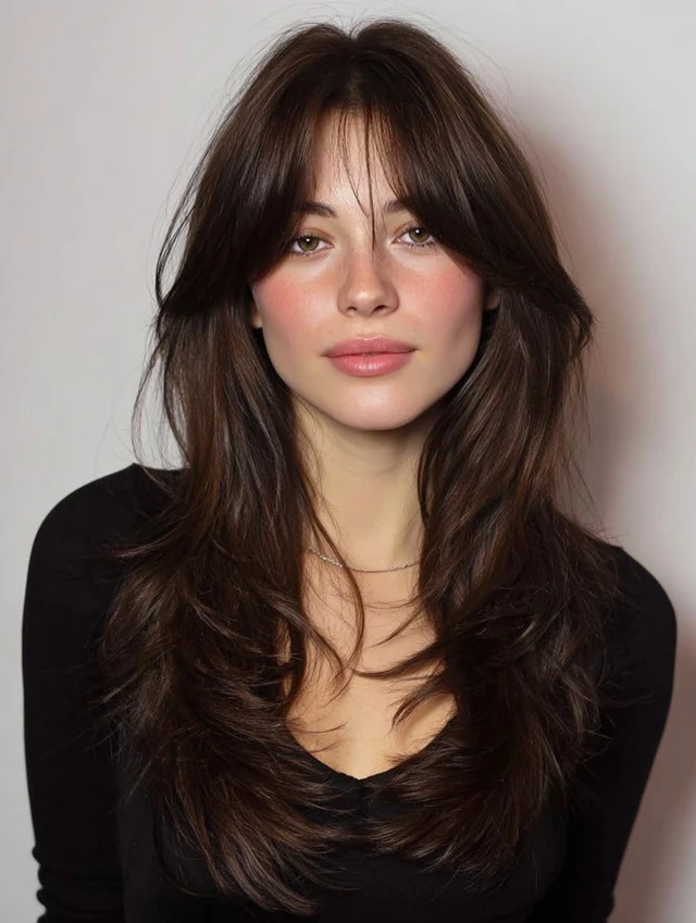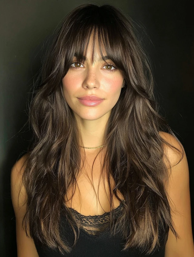 - Long Layers with Curtain Bangs: Trendy and perfectly framed.