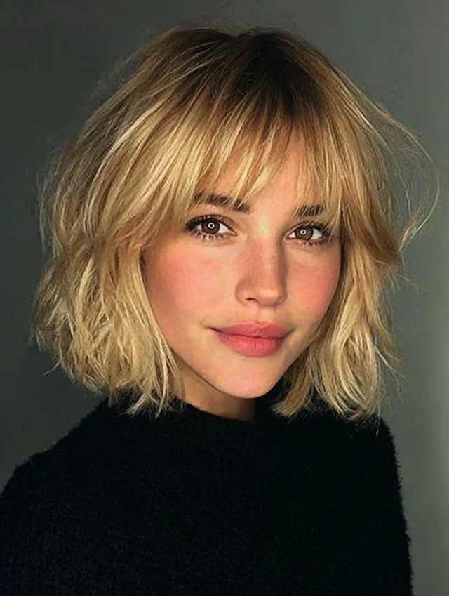 - Wavy Bob with Side Bangs: Romantic and effortless.