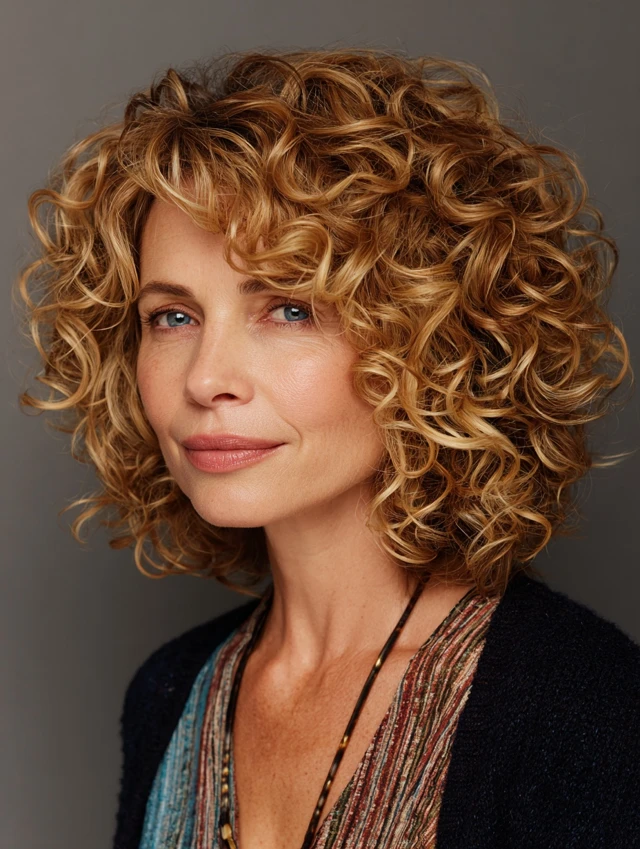 Using a curl-defining product helps maintain structure. This style feels lively, full, and easy to manage.