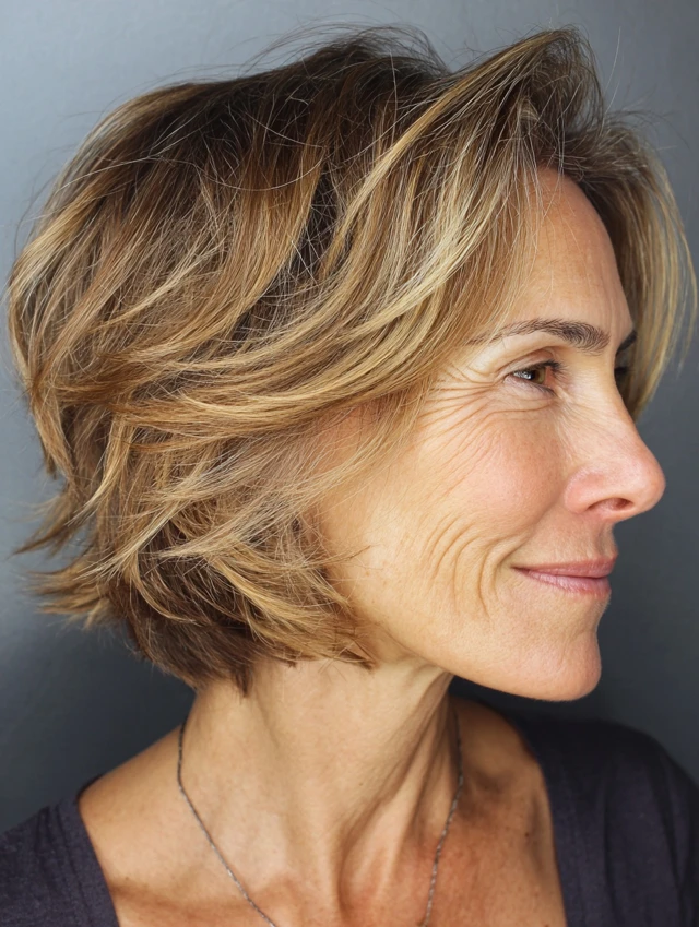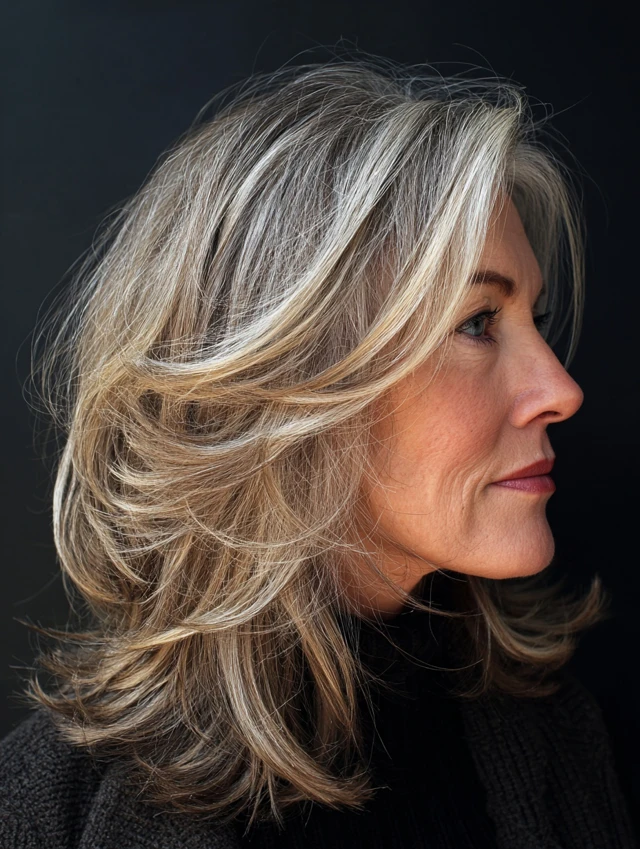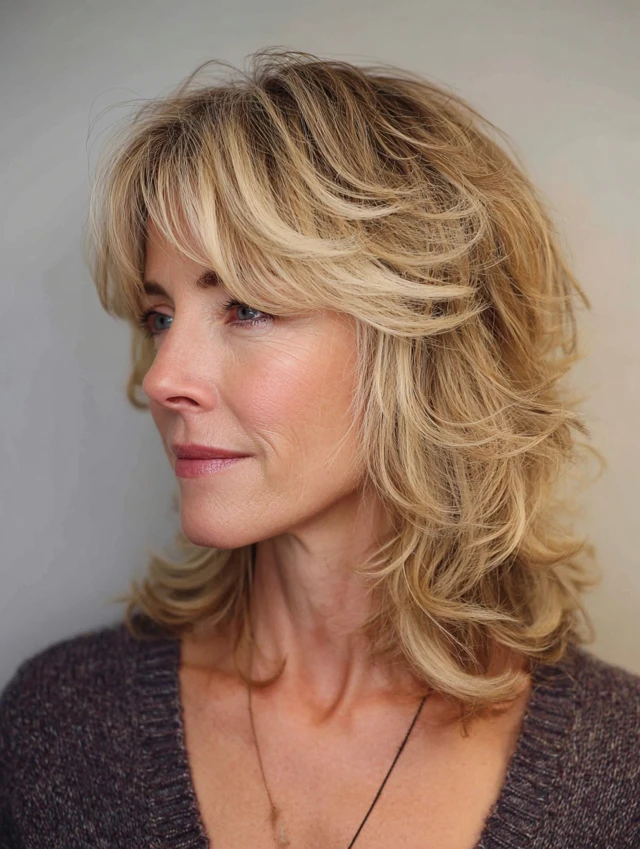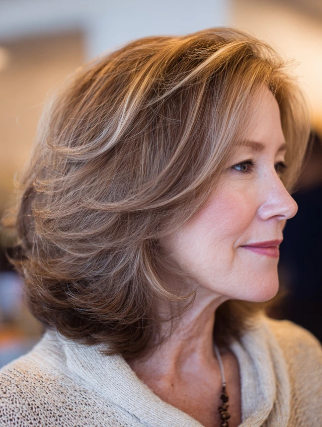 Medium length hairstyles for women over 50 with layers offer a perfect combination of versatility, movement, and ease. The layers add dimension while the length keeps the style practical.