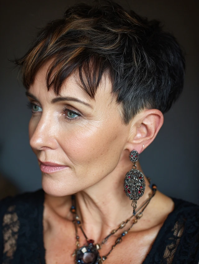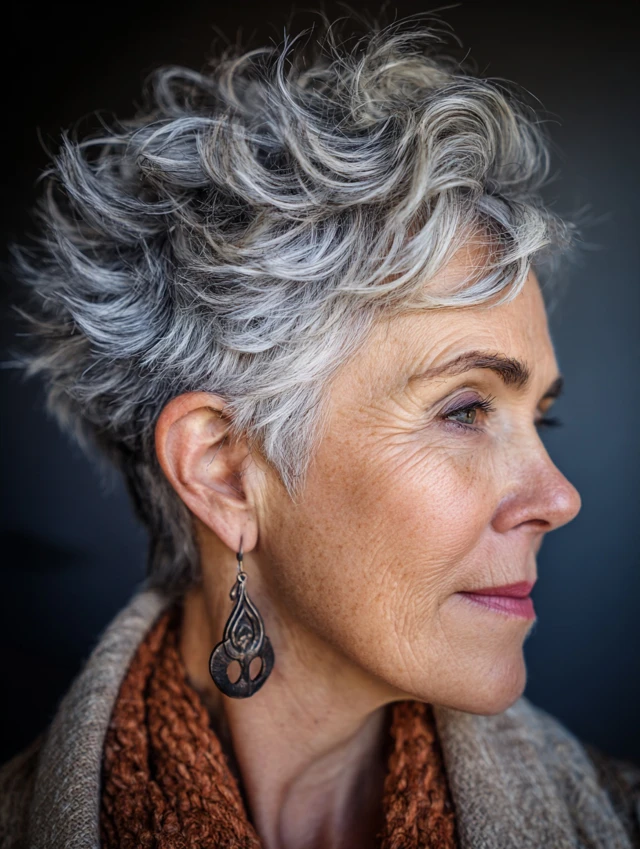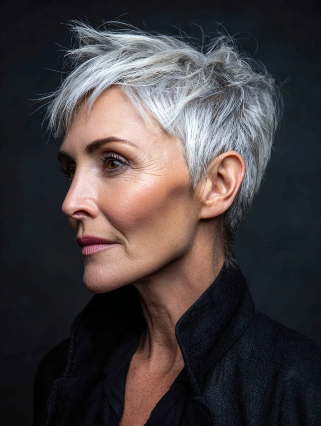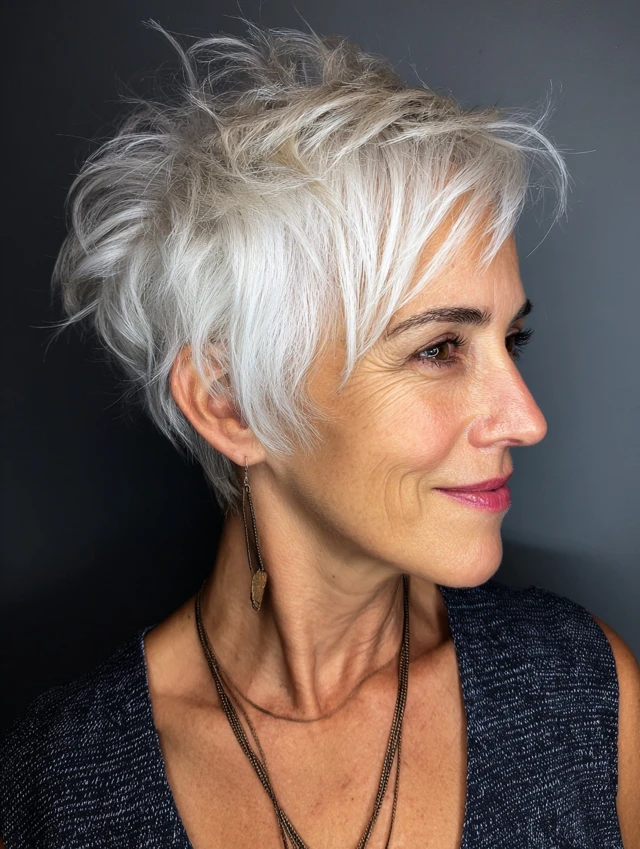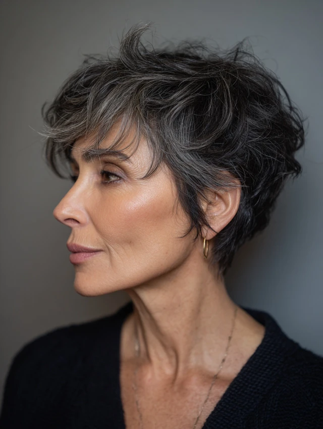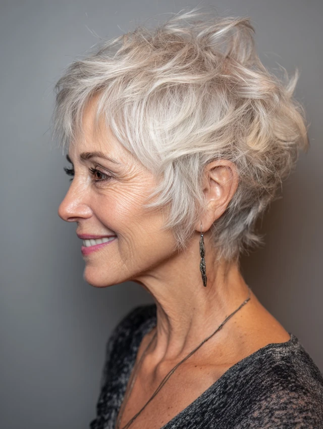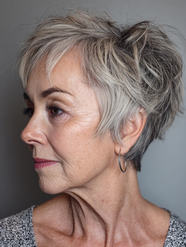 This approach works especially well as hair changes with time. A messy pixie adds volume, disguises flatness, and reduces the need for precise styling. By letting the hair move naturally, the cut becomes easier to manage while still looking stylish.