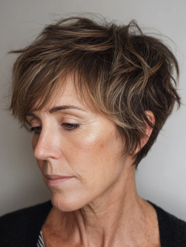 Messy pixie cuts for women over 50 offer a modern, effortless approach to short hair. They combine ease, movement, and style in one practical look.